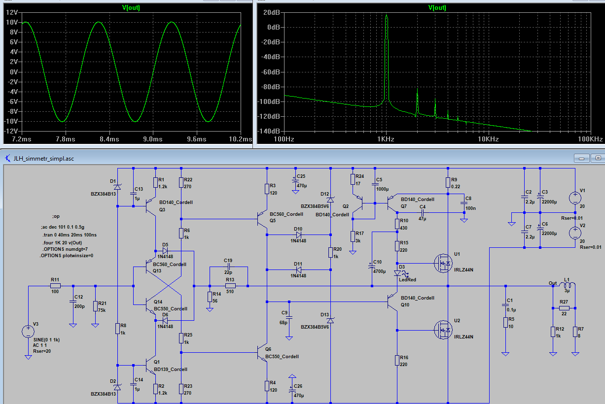 отдельно ранее промерял выходной каскад,использовал его в гибриднике,даже без оос звучит отменно,ведь это класс А,тут все предсказуемо,,,,,есть в симуляторе измерения подобного усилителя