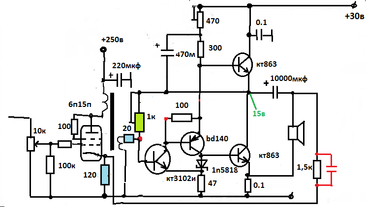 ЗЫ вот Вы и спаяйте и расскажете)))думаю понравится особенно последний с лампой,он не может плохо играть в принципе.Его фишка это возможность менять глубину общей оос охватывающей первый каскад на лампе,можно вовсе убрать общую оос(увеличивая резистор в цепи вторички трансформатора) и получать ламповый звук от 6п15п(транзисторная часть будет иметь ничтожные искажения)
