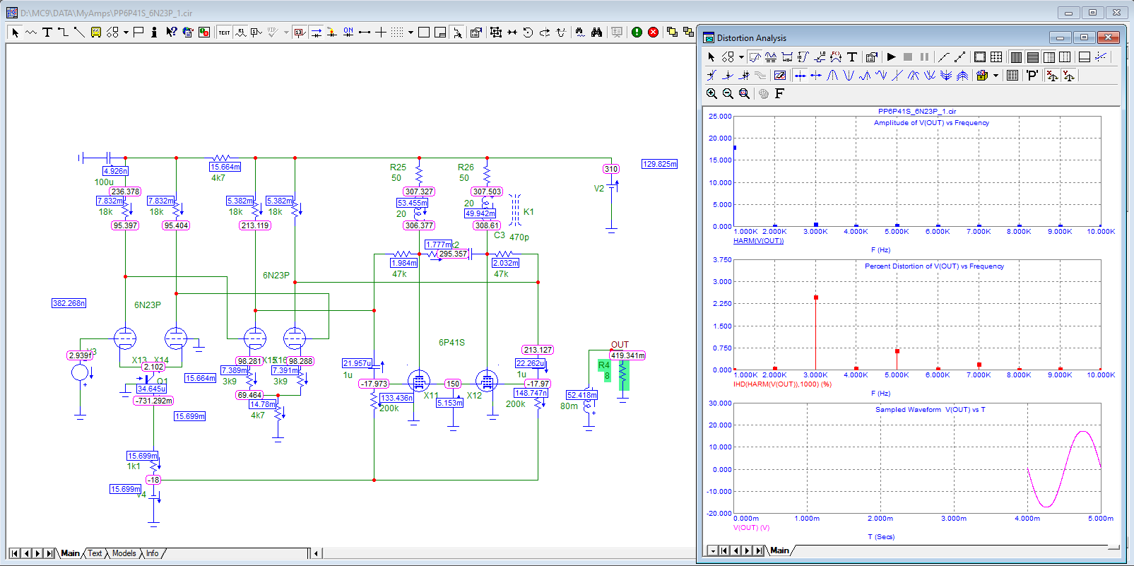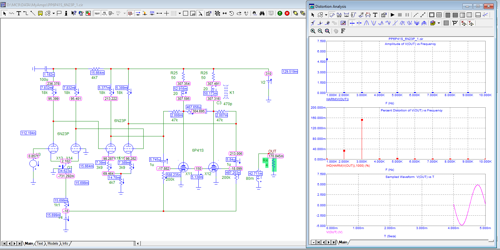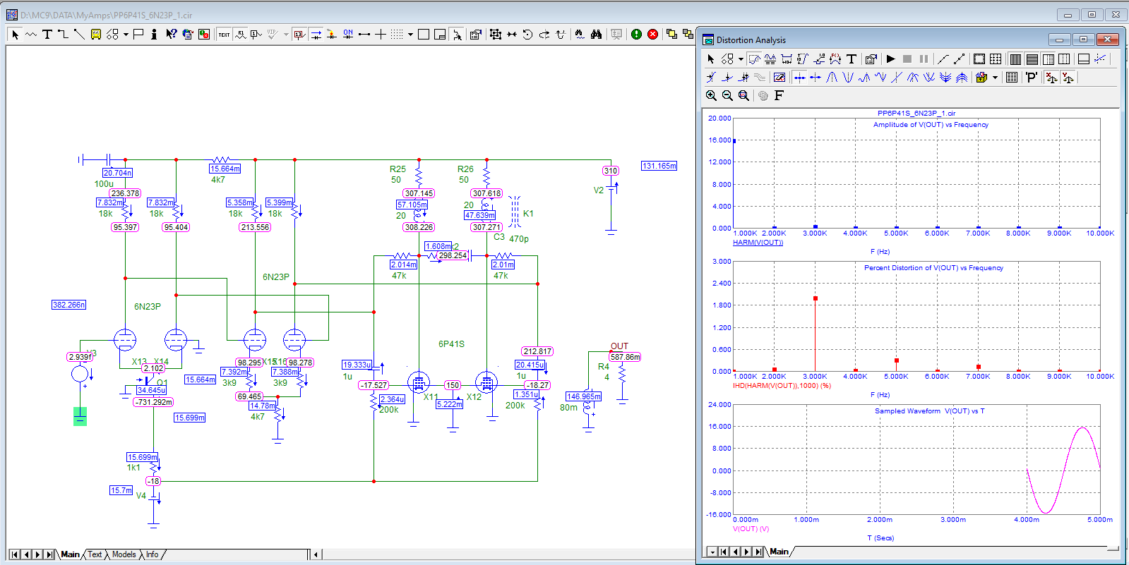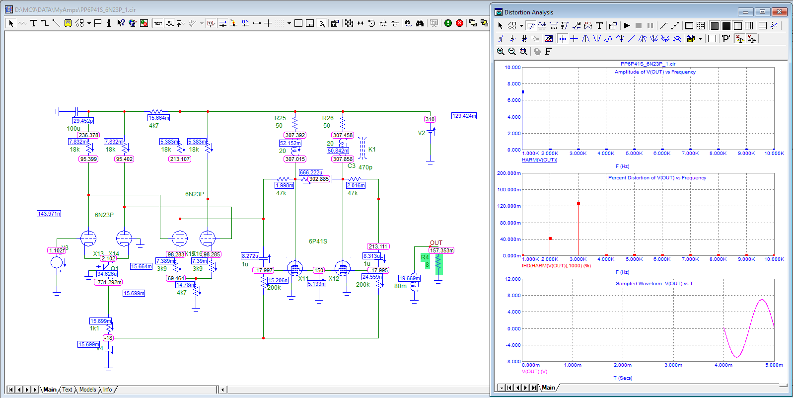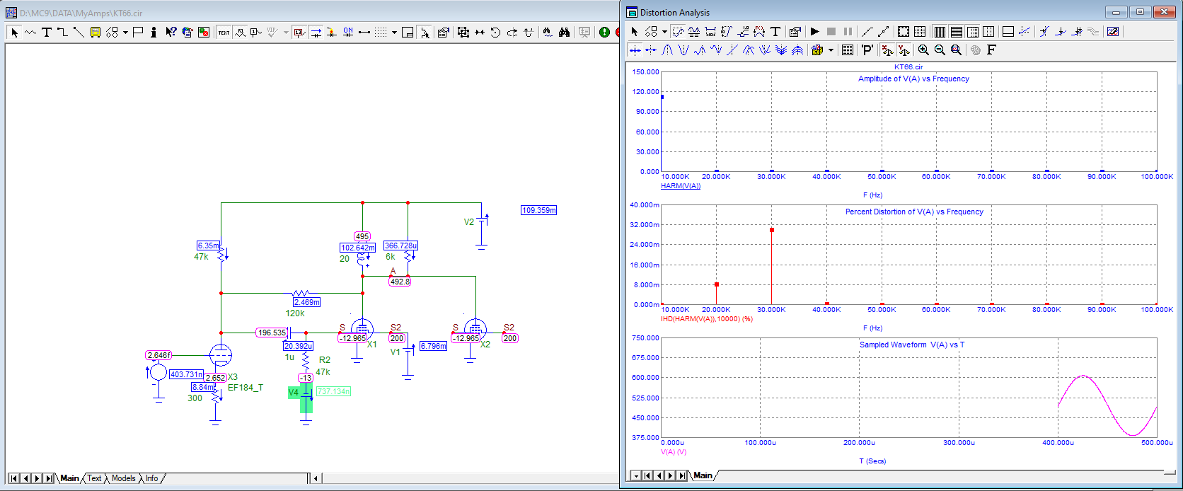 А можно прикинуть мощность КТ66 с питанием 495 Вольт и нагрузкой 6 кОм? У меня какая то очень красивая цифра пентодного режима получается как по мощности, так и по нечетным. Про крутизну я понимаю. Есть еще квартет YL1350, но они как то слишком мощные, боюсь трансы не переварят, 66-х у меня много. Но если это тупик, поищу альтернативы.