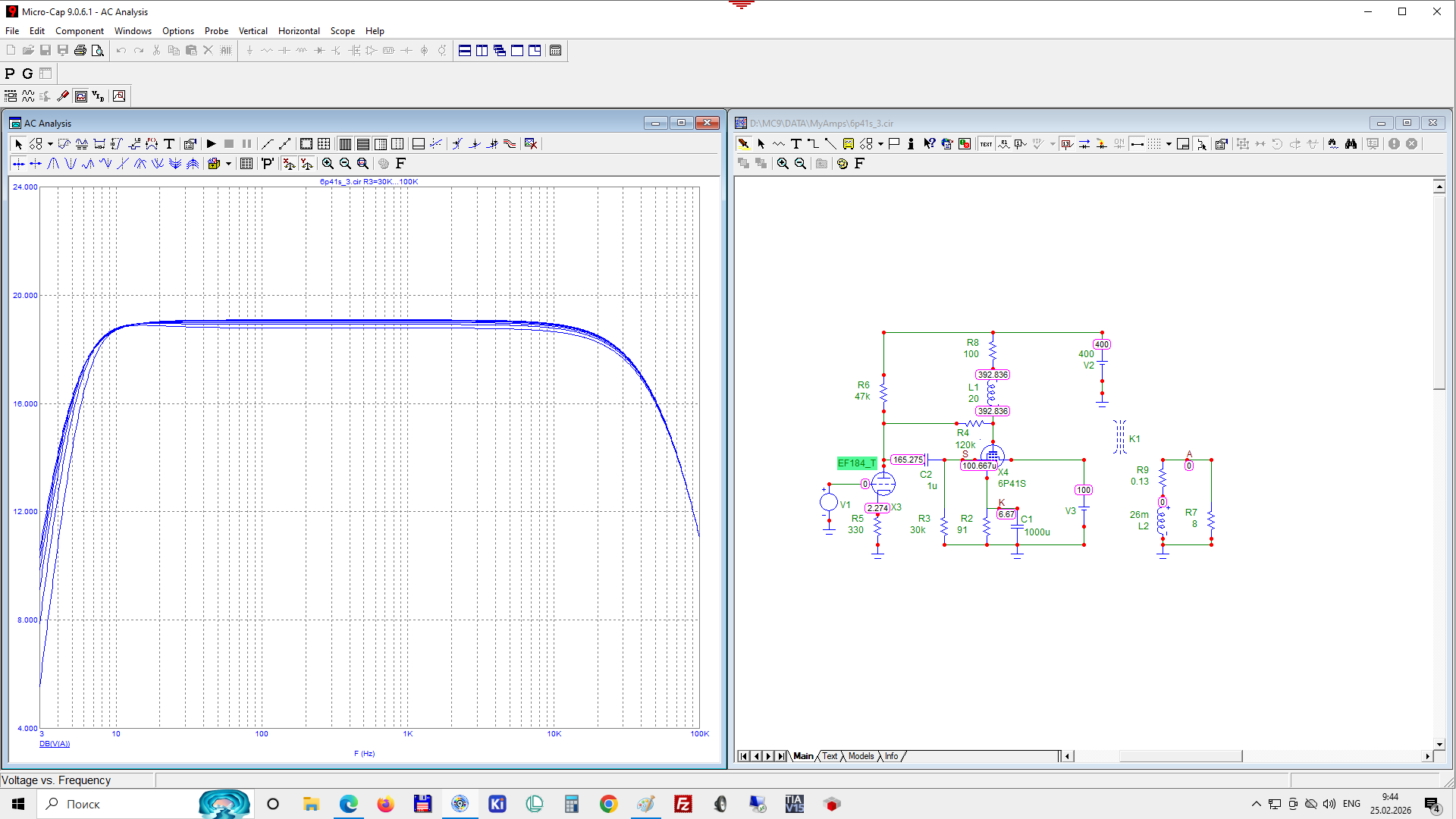В этом полумакете были опробованы варианты на 6П9+6П9, 6П6С+6П6С, затем мне подарили штук 30 ЕЛ36 - на них и остановился...