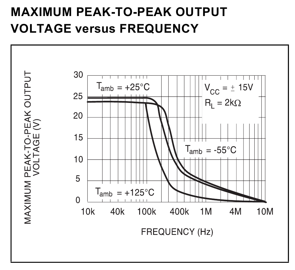 Но при взгляде в datasheet TL082, полоса пропускания при максимальном размахе - может будет 300 кГц, может - нет.