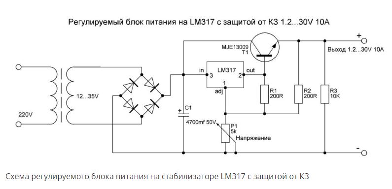 Навесной транзистор долой, тока 317й хватит для работы. И защита от КЗ у нее есть.