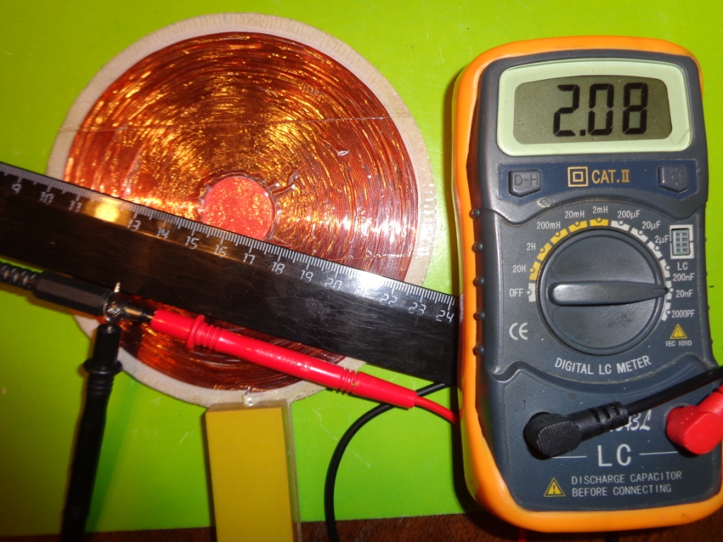 Подробности намотки я подробно описал 7.6.22 г. стр.533, обычно возникает затруднение с выбором длины провода, там он обозначен, и настройка, кстати, за 2 года емкость уменьшилась с 2,21 нФ до 2,08 нФ, очевидно надо проверить настройку, правда приборы разные, на фото частота измерения неизвестна.