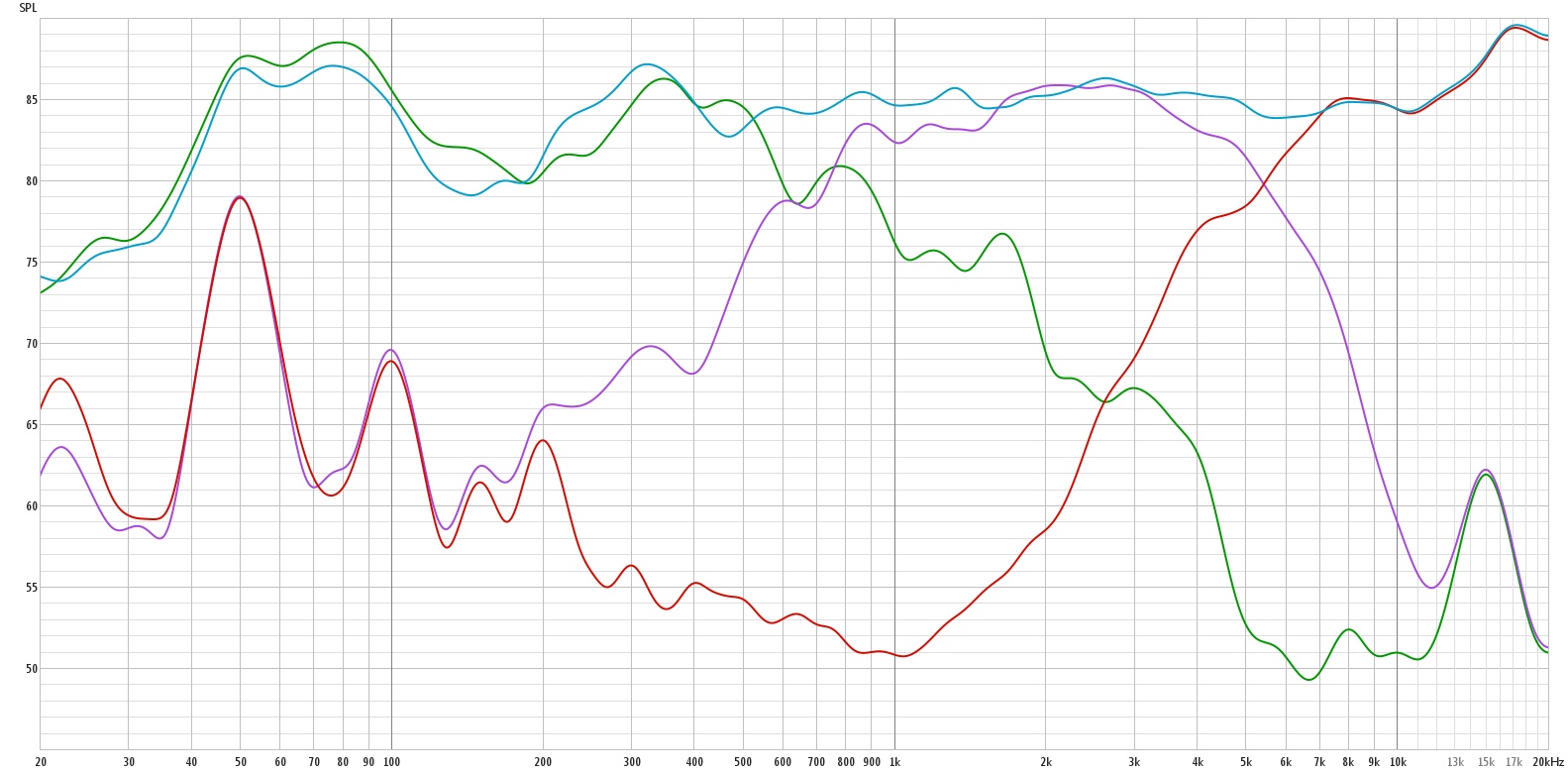 Там, похоже, не только "умирает"на 600, а горб на 400. Его на многих видео слышно, более-менее его не было в варианте фильтра, где RL цепочка параллельно НЧ динамику, и нет шунтирующего его конденсатора. Посмотреть бы в ближнем поле, что это: динамик, влияние широкого корпуса, или комната