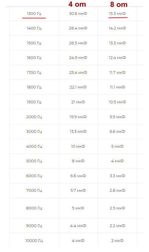 Интересует среднечастотная цепь, почему выбрали ёмкость в 20мкф то есть ни больше не меньше для средника?