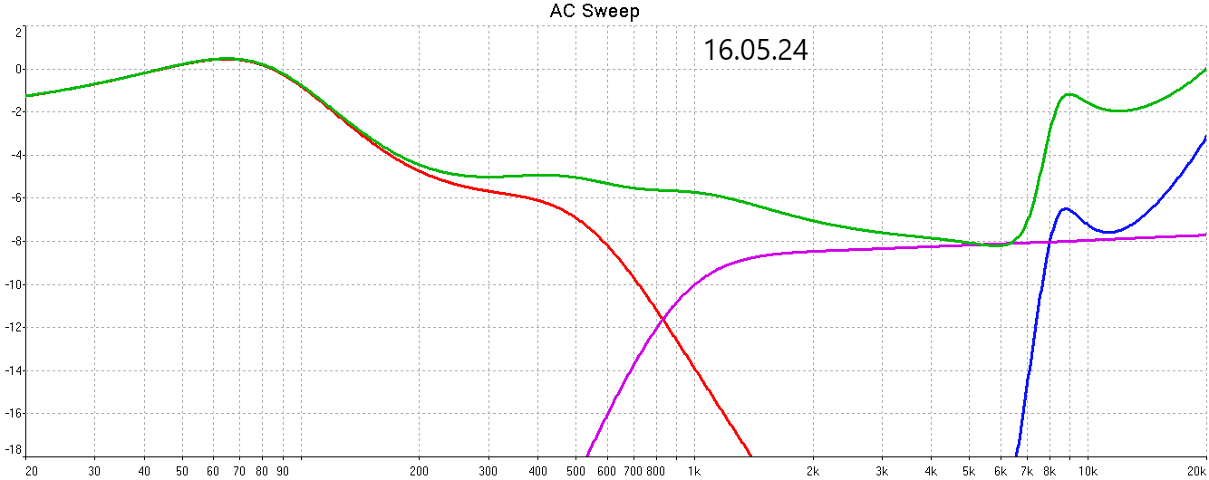 Взирая на перепад 90/300 Гц в 5дБ и провал 500...800 Гц, следующим логичным шагом будет... удаление катушки 1,3 мГн в будку к псам. Действия по СЧ звену наводил выше #104 .