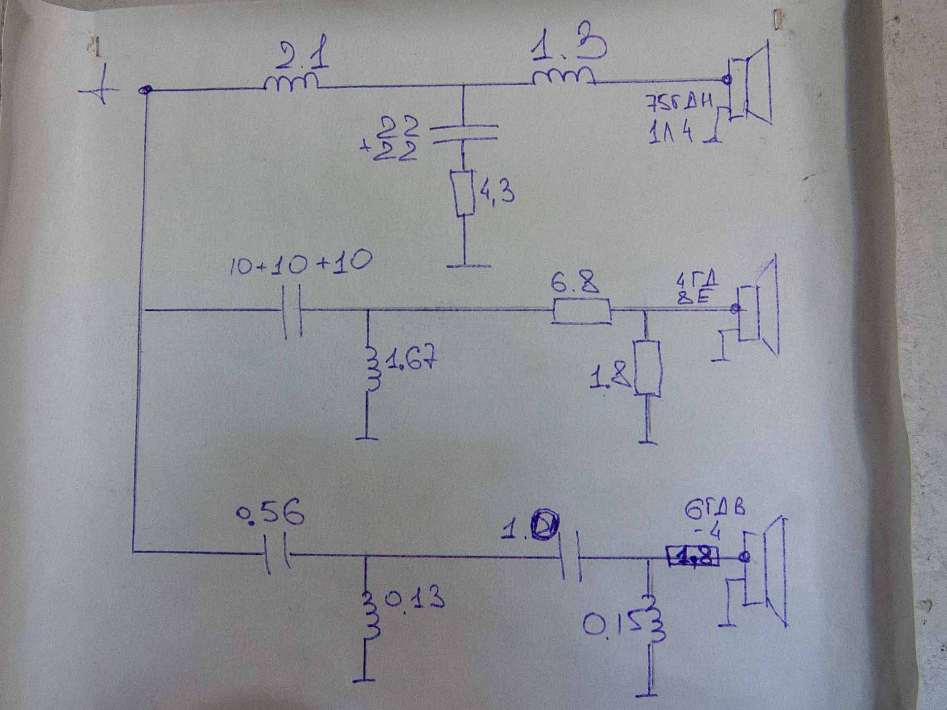 6гдв-4 зашунтирован резистором 3 ома (была цель погасить резонанс) до конца это сделать не удалось, осталась "шишечка" порядка 2-3 дб на "+-" 4 кгц. Конденсатор был уменьшен по сравнению с расчетным для выравнивания ачх (рулится довольно плохо, а вылавливать четвертинки децибела на разных по "корявости" динамиках занятие не благодарное). Измерения в компьютере знакомого Александра Сергеевича, если не поленится, наверно сможет опубликовать.