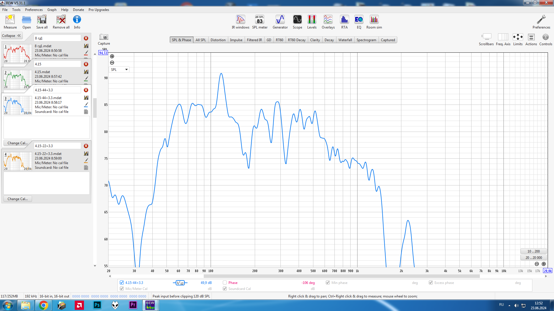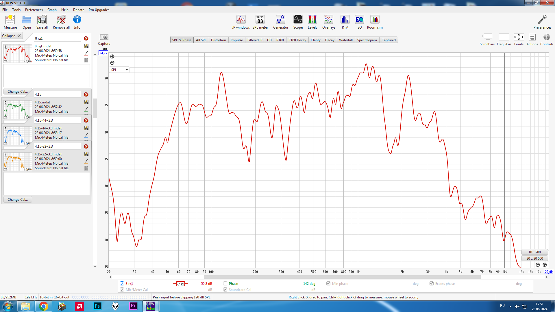 Замеры делались на расстоянии 1м. микрофон по центру каждого динамика .Замер общий АС ,микрофон распологался между сч и вч.