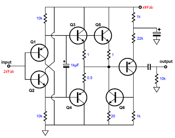 Однако, в вьіходном каскаде один такой использовался. Вьіше упомянутьій Сточино предложил "вьіключать" тот злосчастній транзистор, соединяя вьіход ОУ с противоположньім полюсом питания снаружи резистором или источником стабильного тока.