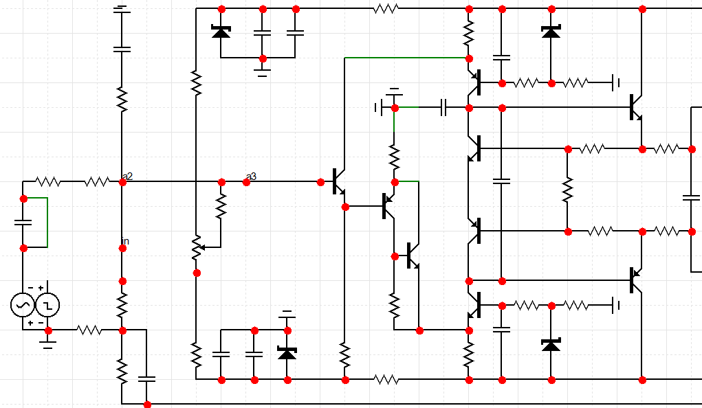 Влезу поумничать. Собирая такие симметричные схемы на транзисторах разной проводимости, обнаружил , что напряжения на переходах Б-Э у них сильно разные, поэтому ноль на выходе не получался никогда, без могучей оос по постоянке. Попытка выравнять ноль подгонкой резисторов в ИТ приводила к идиотским номиналам и балансировании на единицах ом и уходе нуля от настроения транзистора.