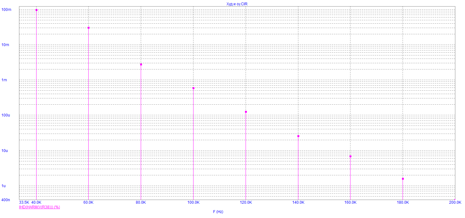 Что там не понятного ? Ну можно так .ИМД и спектр в фурье.Кг 36м или 0.036 % на номинальной мощности. В капе спектр в процентах .