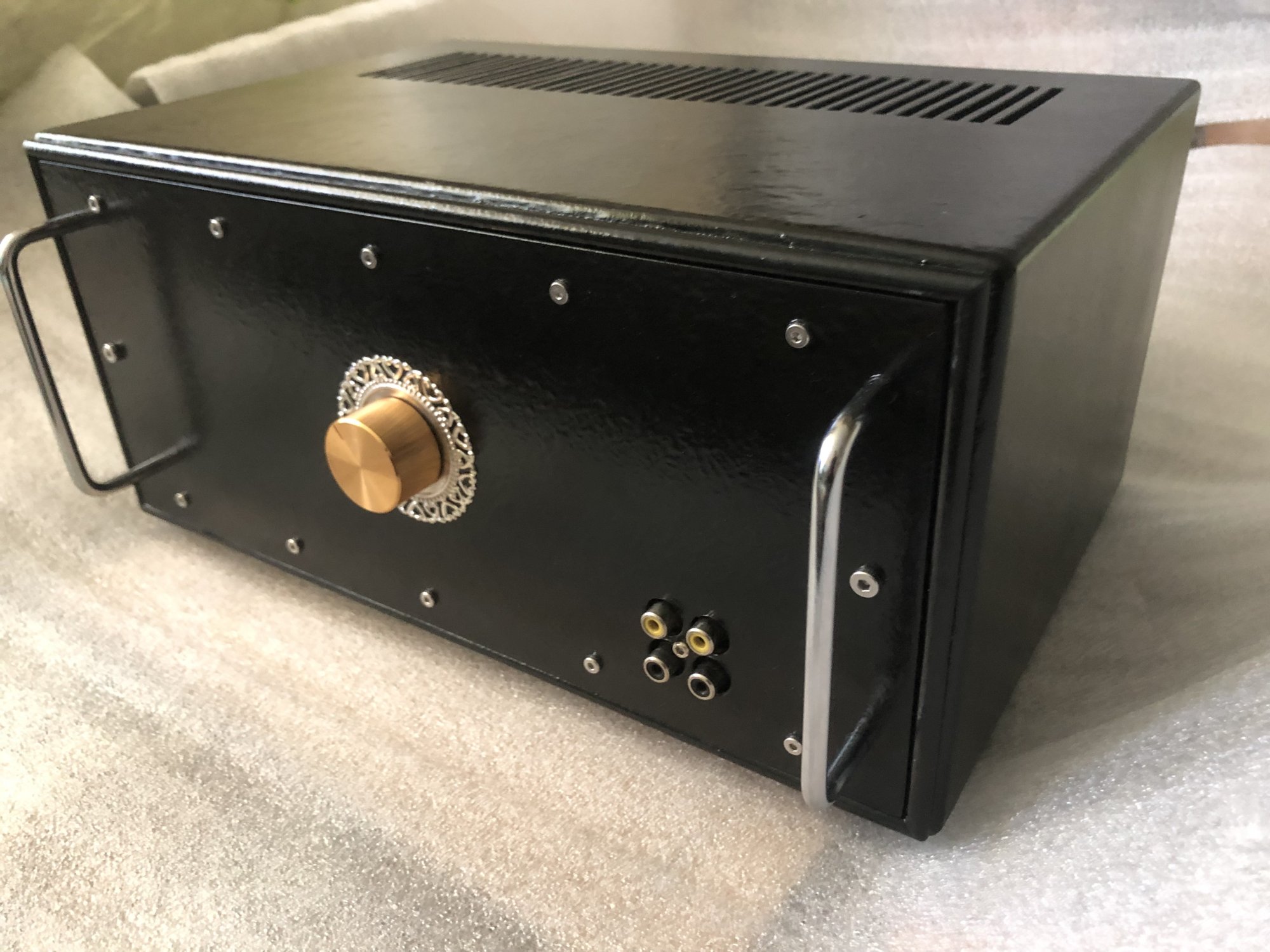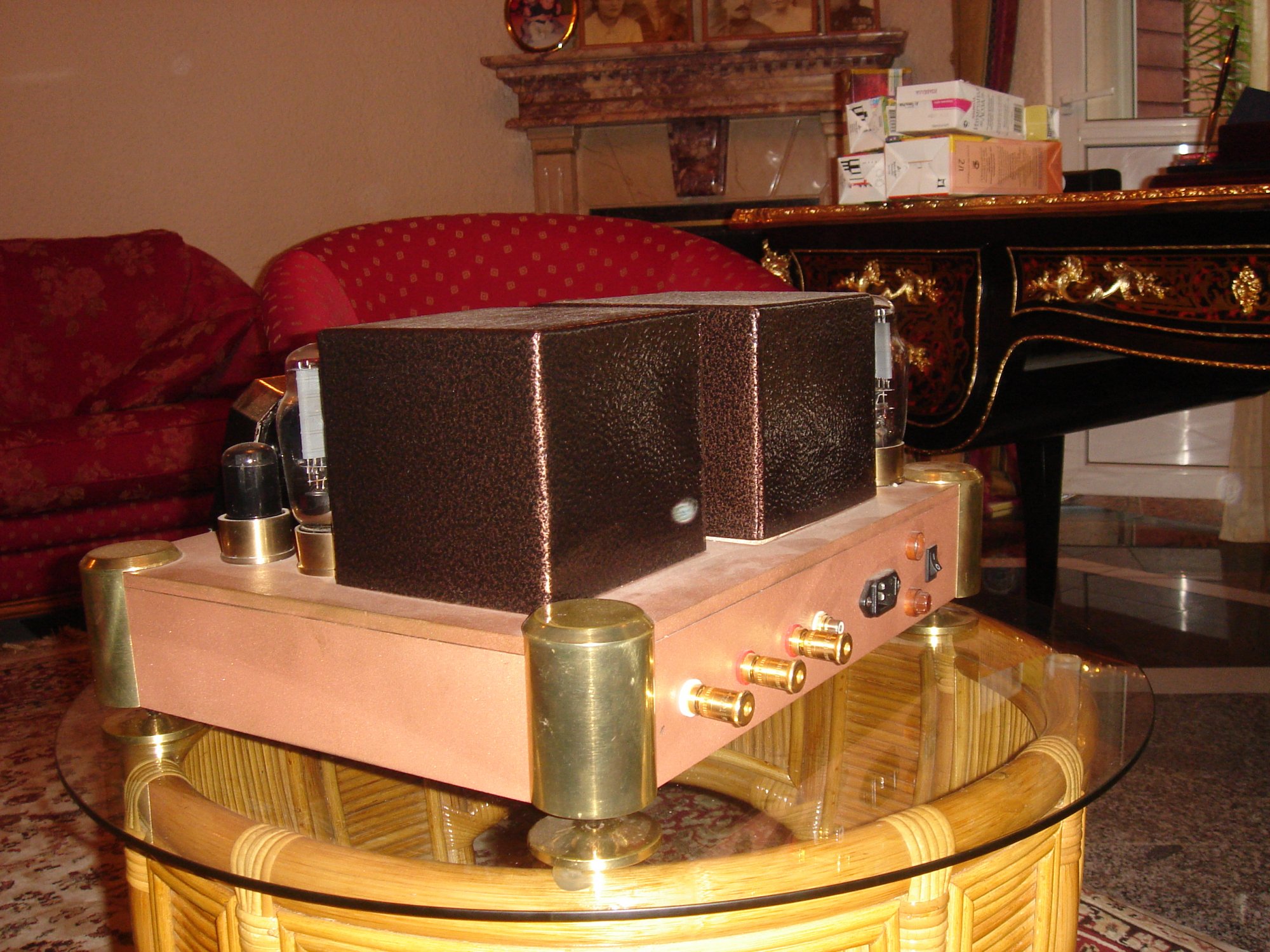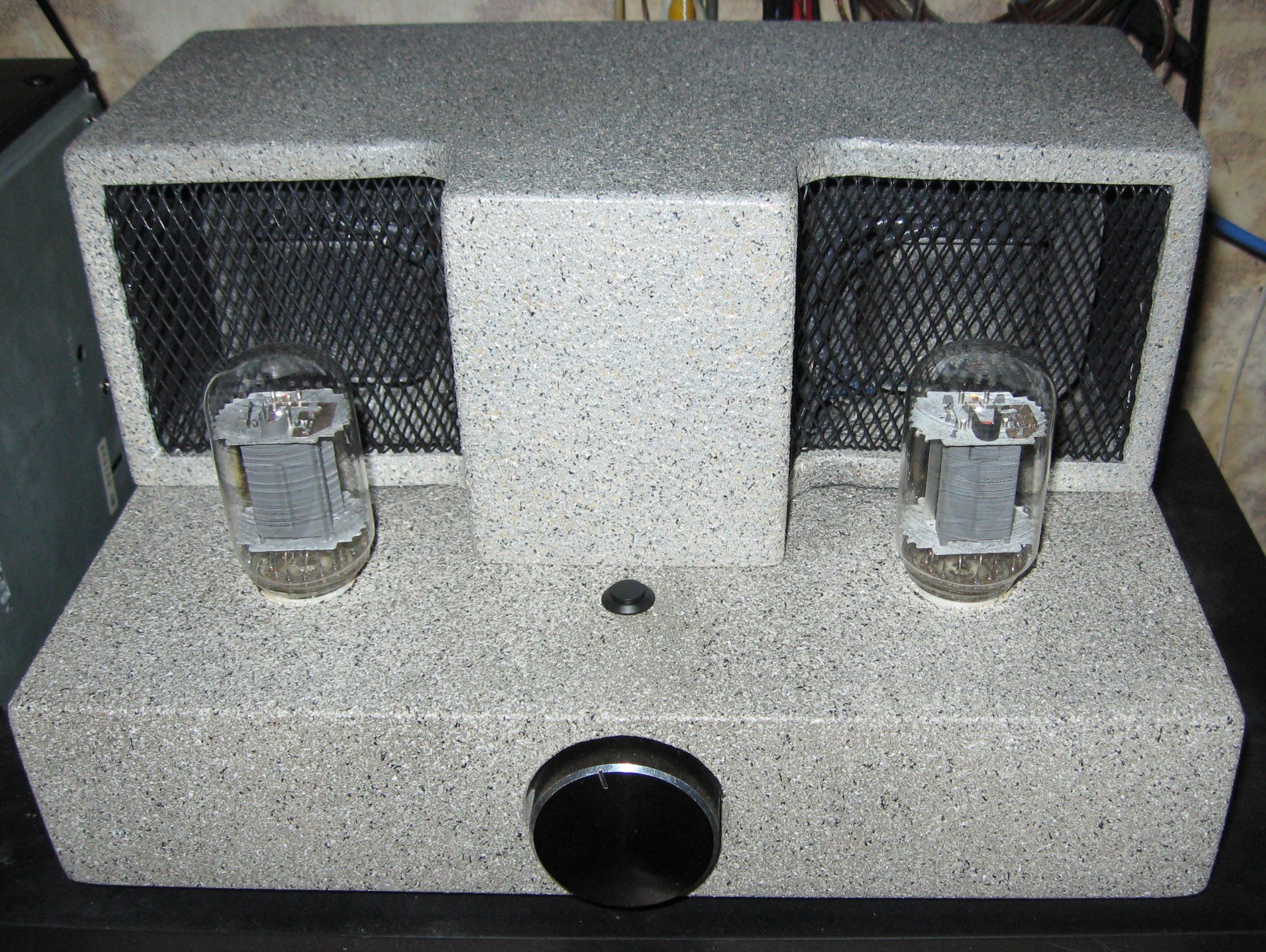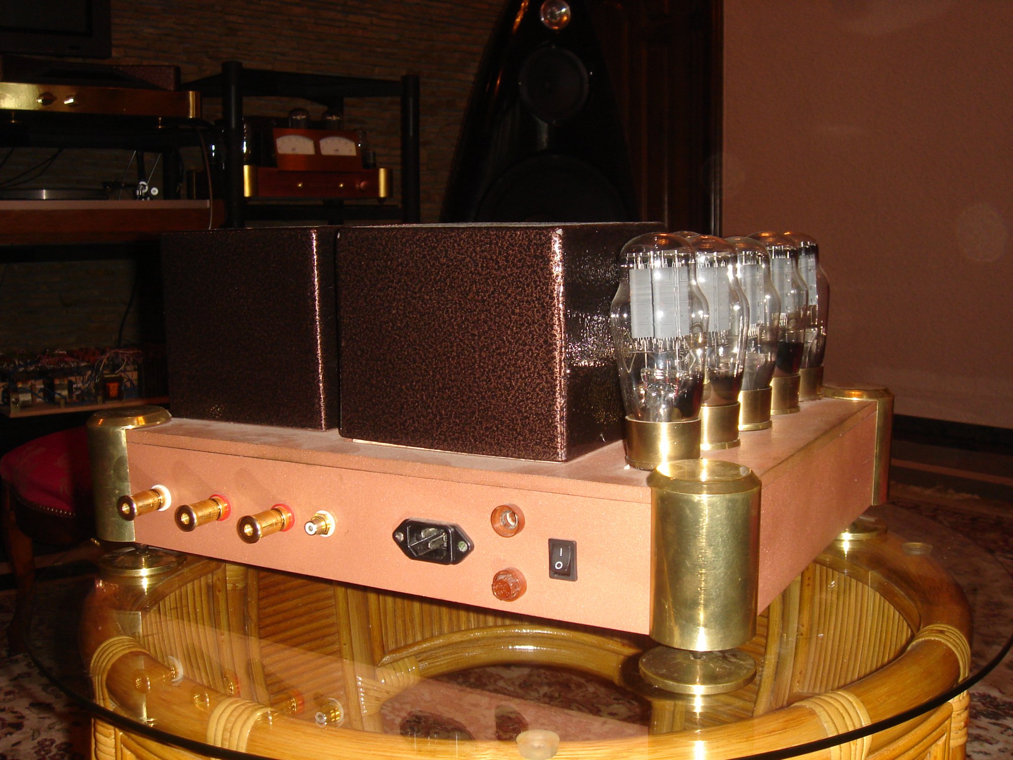 ПС. Виноват, это другой вариант корпуса, он сделан из гнутого медного листа 4 мм, а собранный из плит -это другой УНЧ. на 2А3. Сейчас найду его фото.