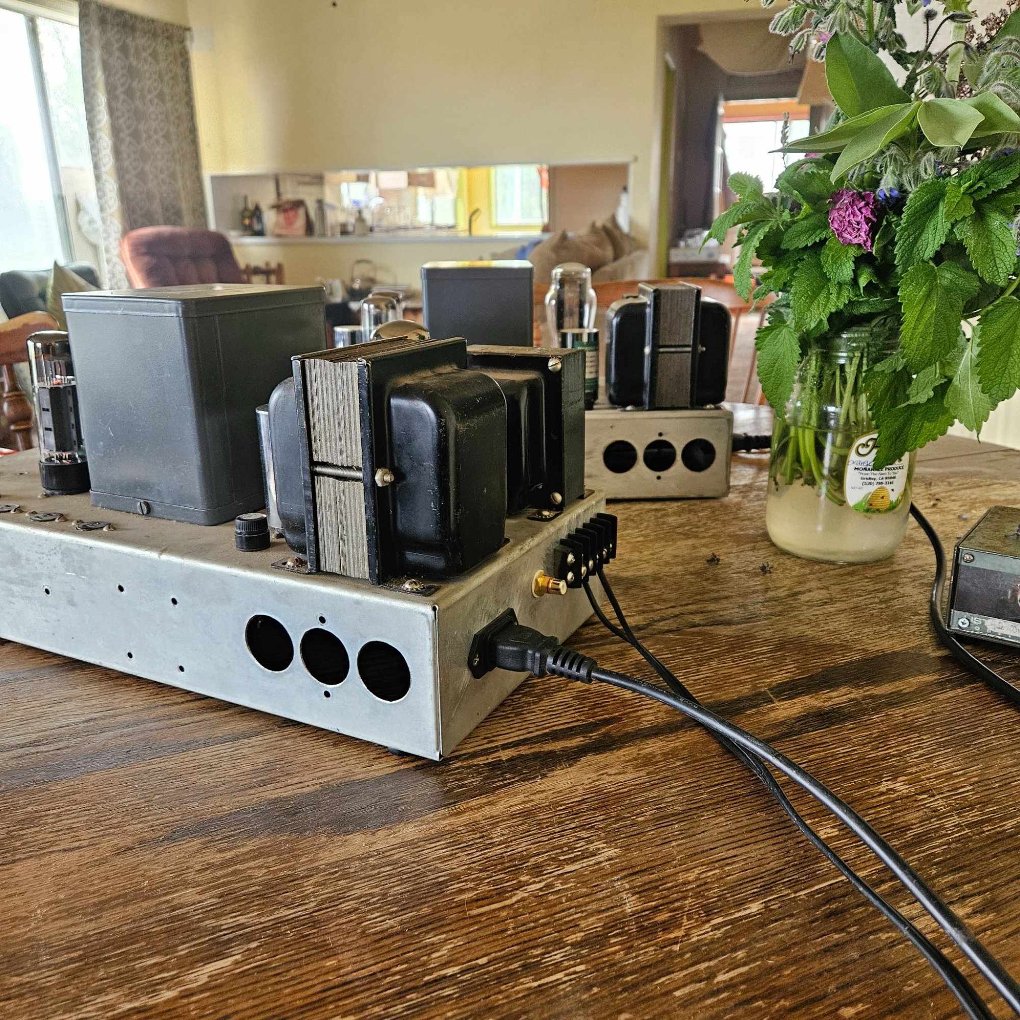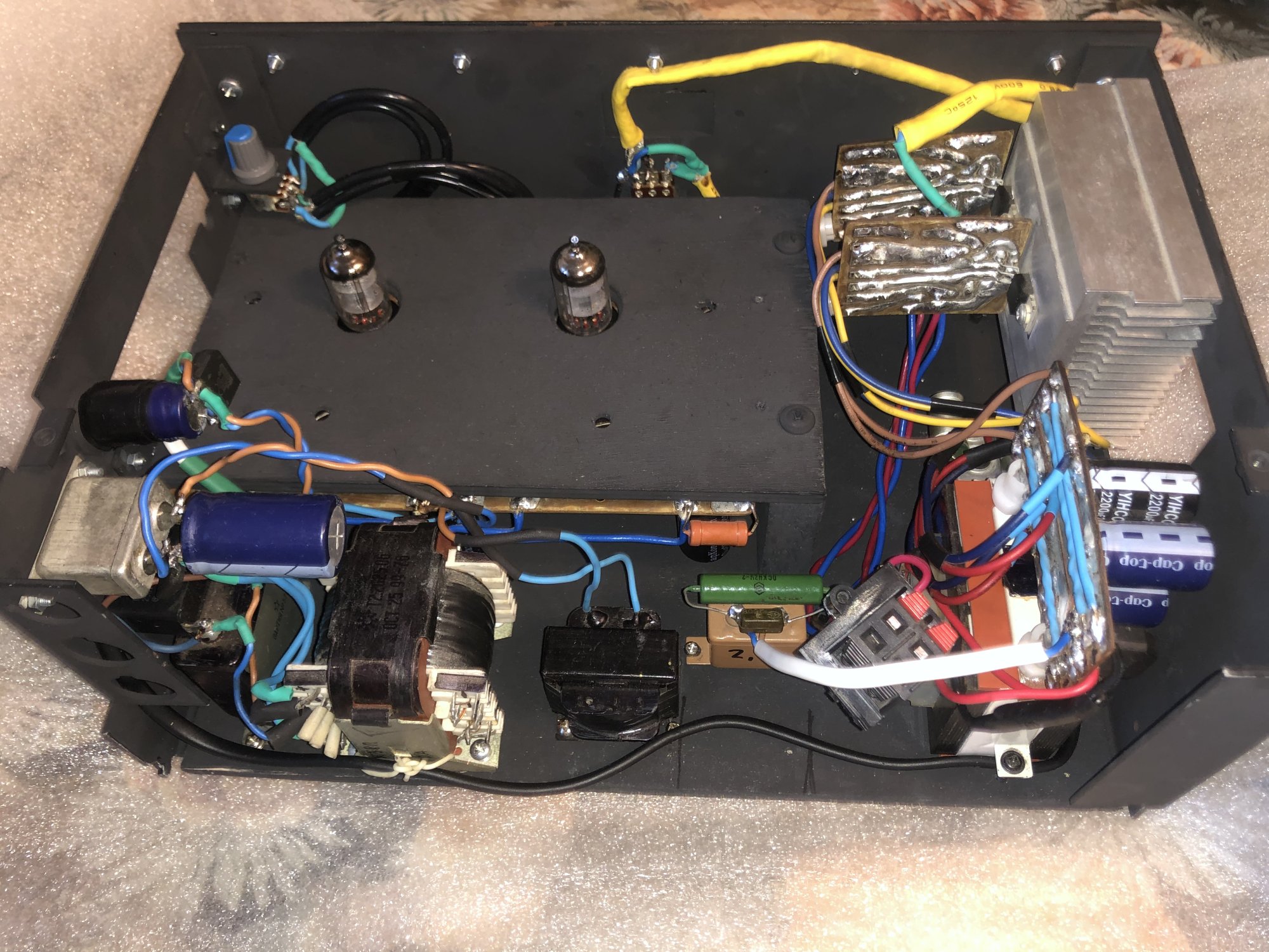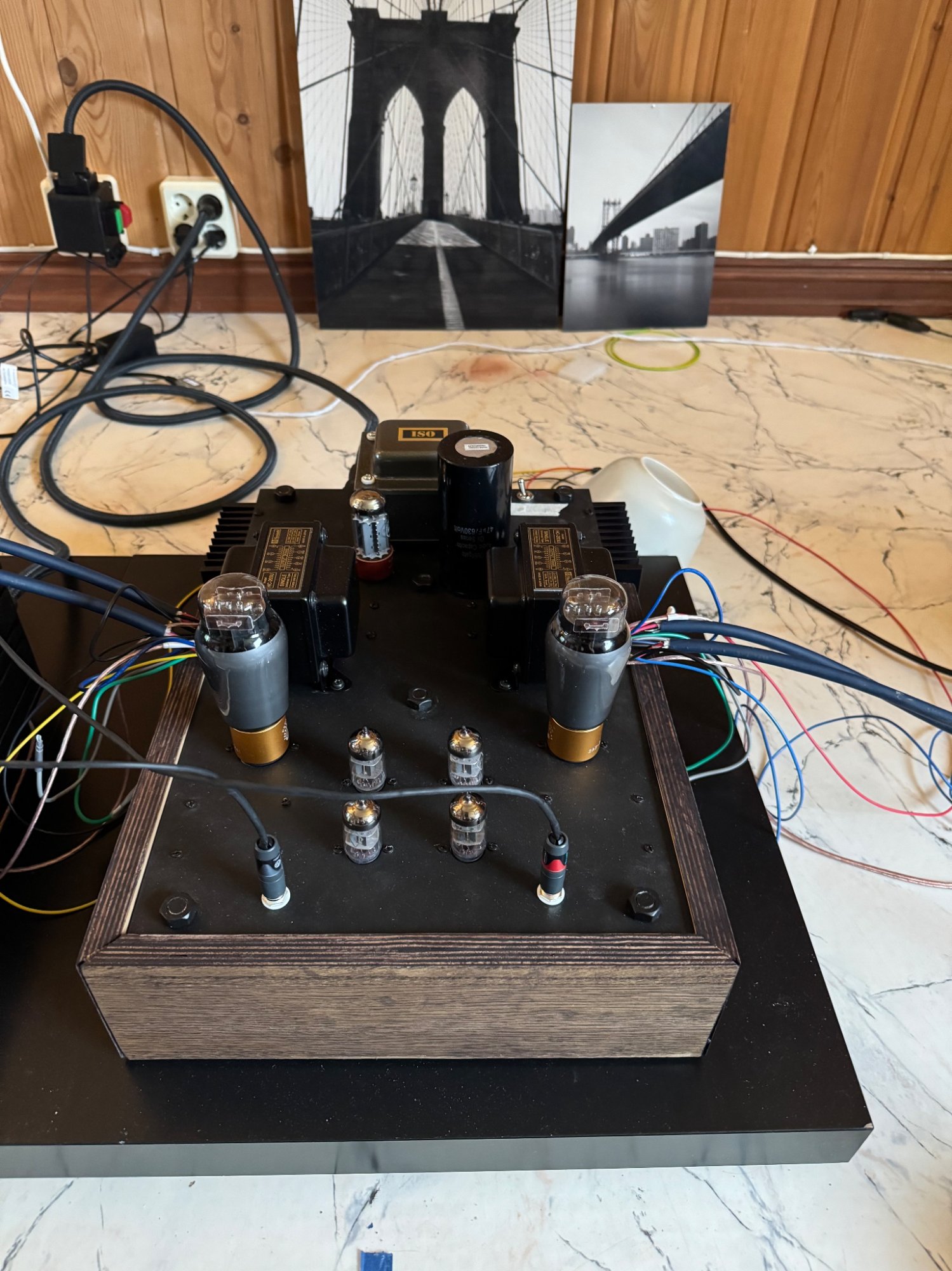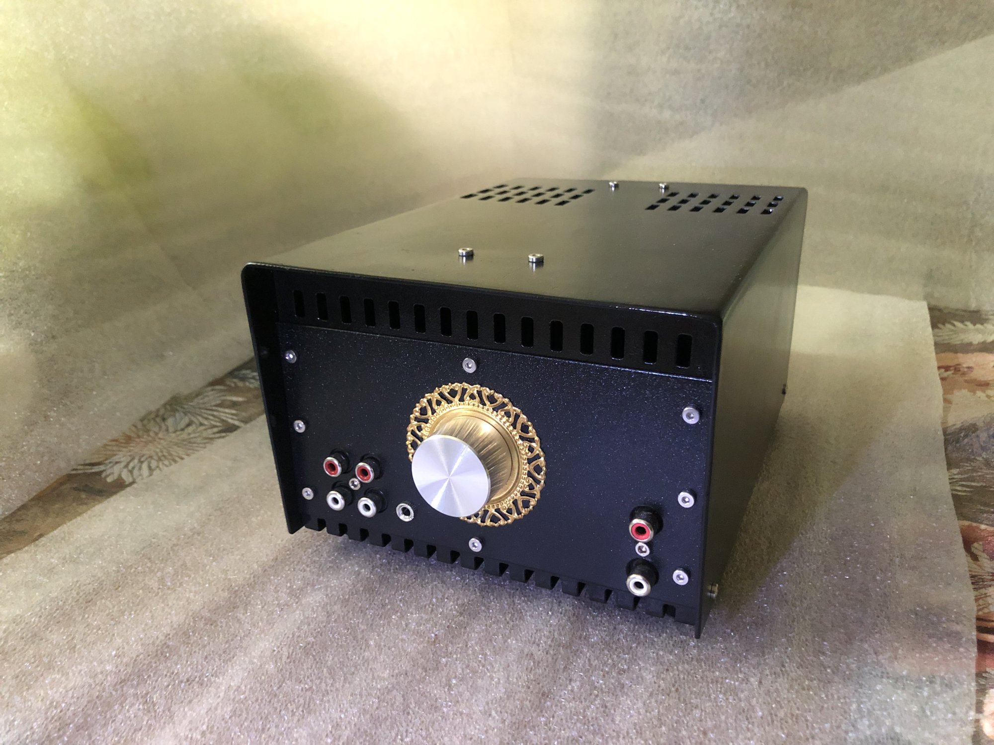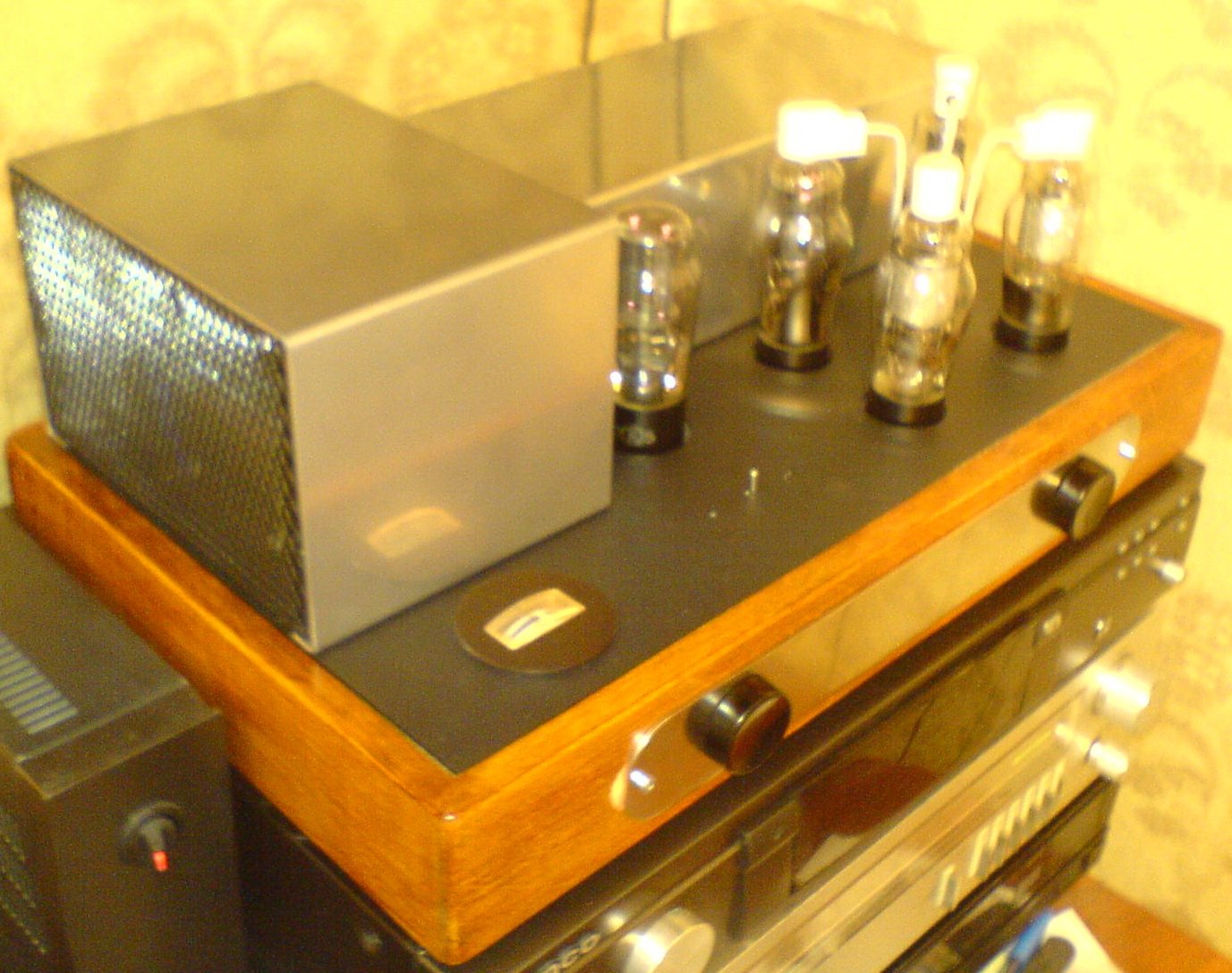 ПС. Виноват, это другой вариант корпуса, он сделан из гнутого медного листа 4 мм, а собранный из плит -это другой УНЧ. на 2А3. Сейчас найду его фото.