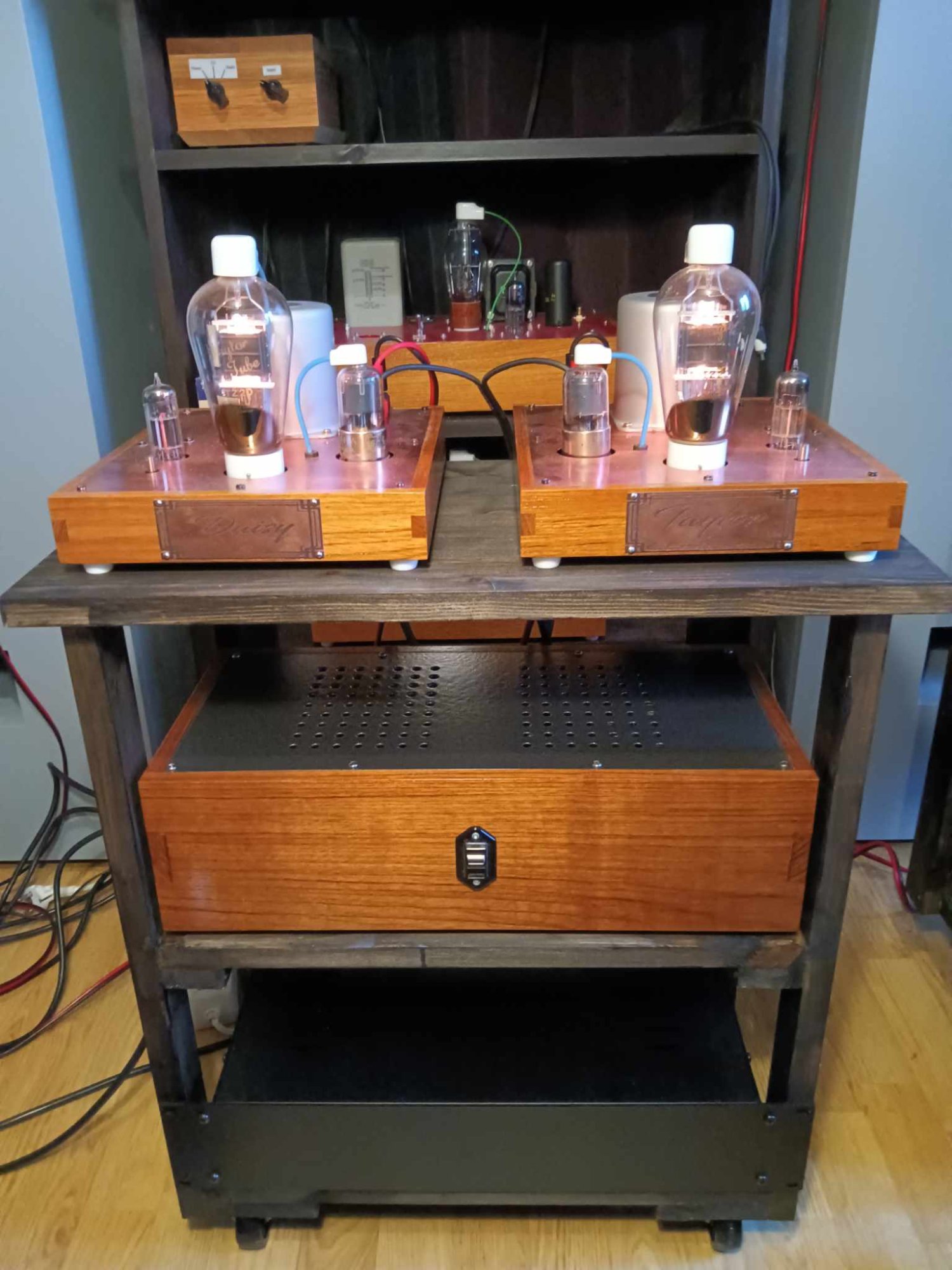 Это случайно усилители не знаменитого Евгения Ладикова, основателя фирмы RONEeS?"Красивый и недорогой корпус получается из медных пластин толщиной 10мм и фрезерованных латунных стоек , скрепляющих их по углам, а также несущей медной плиты 12 мм толщиной"