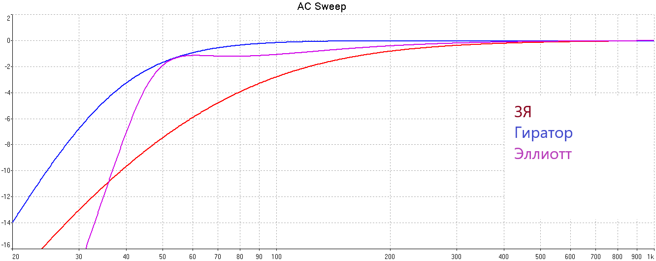 Кто бы знал, что легкий вздрык на 50Гц по Эллиотту даст такую мерзкую ПХ.Эллиотт vs полосовой эквалайзер на гираторе, при одинаковой хотелке 50 Гц -2дБ.