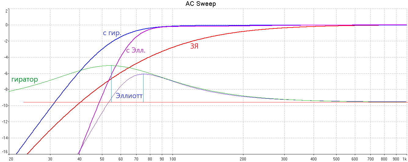 Проблема корректора Э. в том, что высота пика его АЧХ однозначно связана с добротностью, в то время как у полосовика на гираторе подъём и добротность выставляютя отдельно по желанию трудящихся. Вот как-то так.