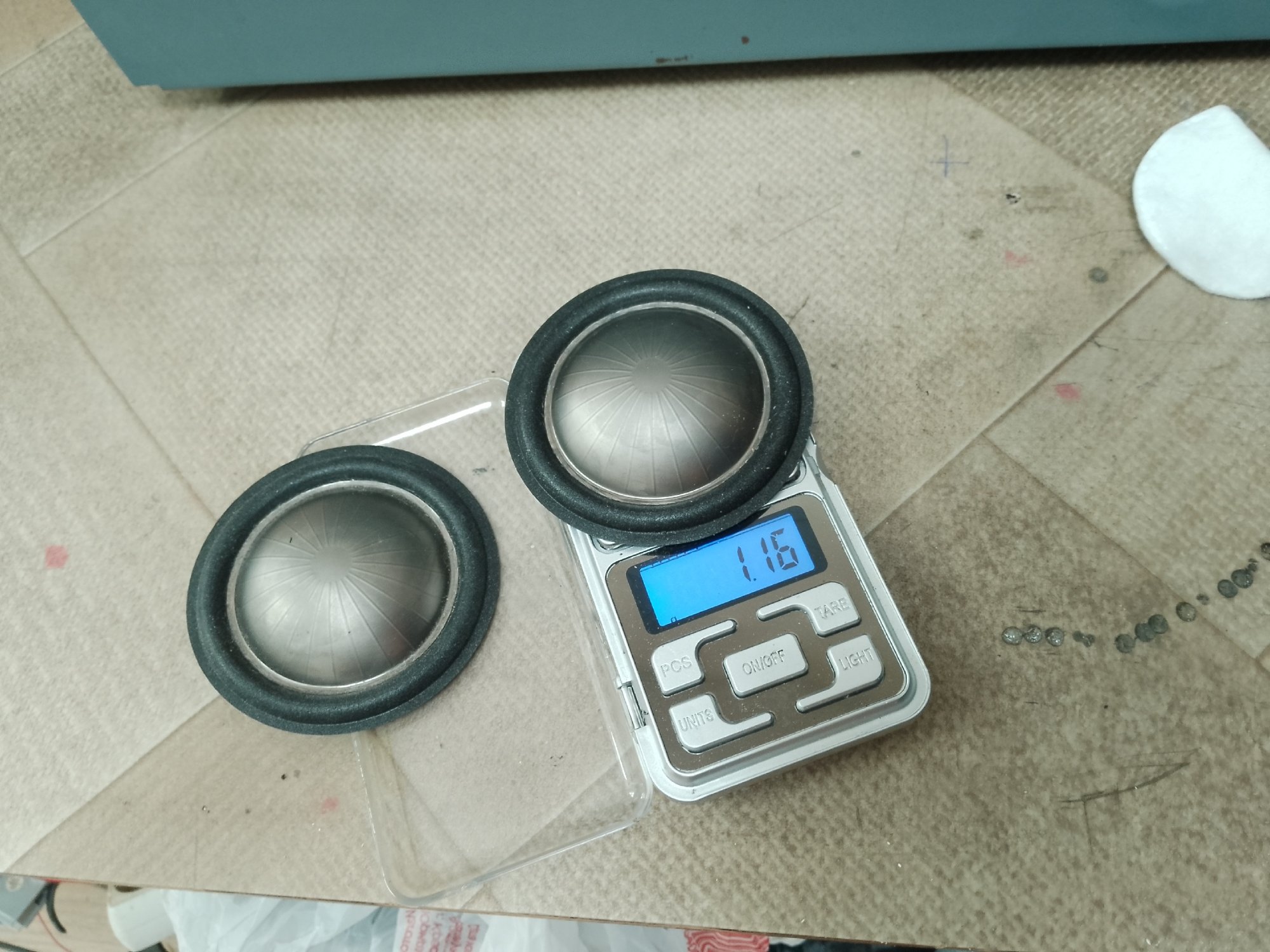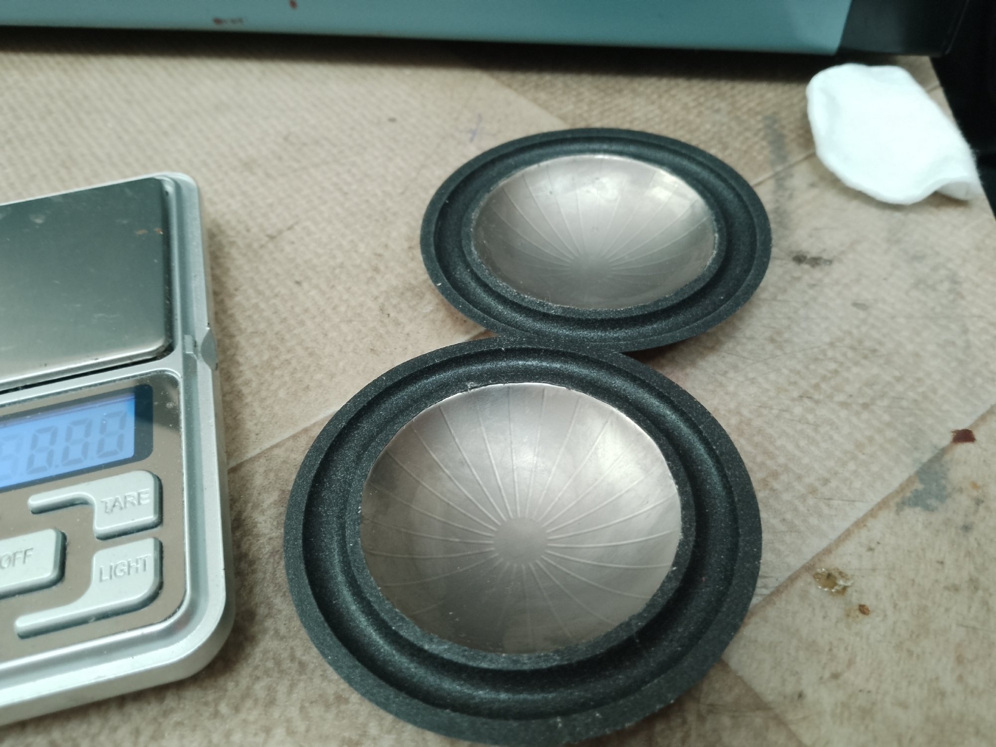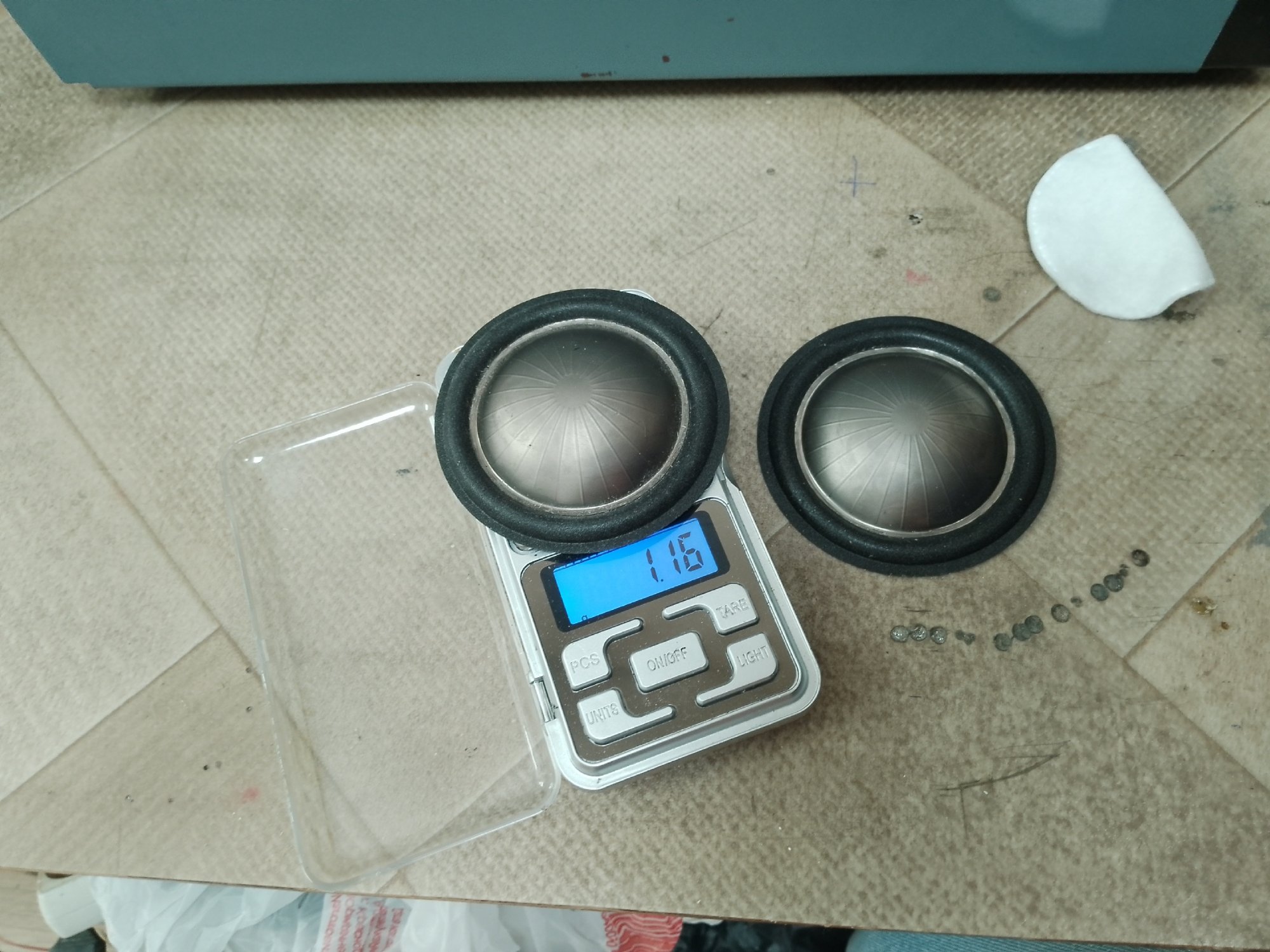 У меня недавно тут спрашивали какой вес подвижки моих СЧ вышел. В сборе с подвесом и токоподводами 4,4 грамм. По отдельности 0,94 гр купол, 2,51 катушка, подвес такой же новый, но с большими краями 1,6 гр.