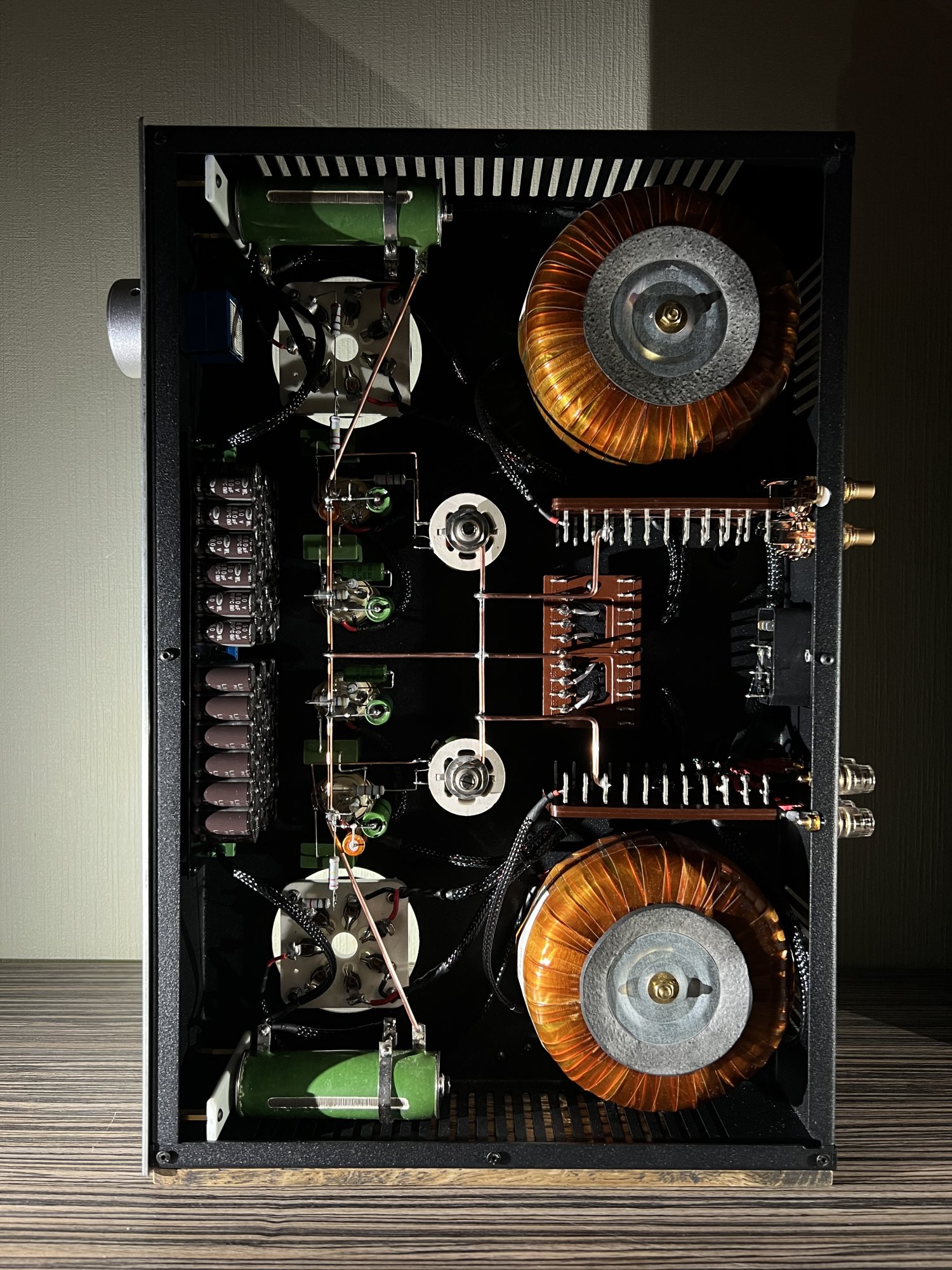 Просто корпус несколько универсален, что бы можно было разместить еще интегральник на 6L6GC, одноканальный мощник на КТ120 и одноканальный однотактный мощник на паре 2А3.