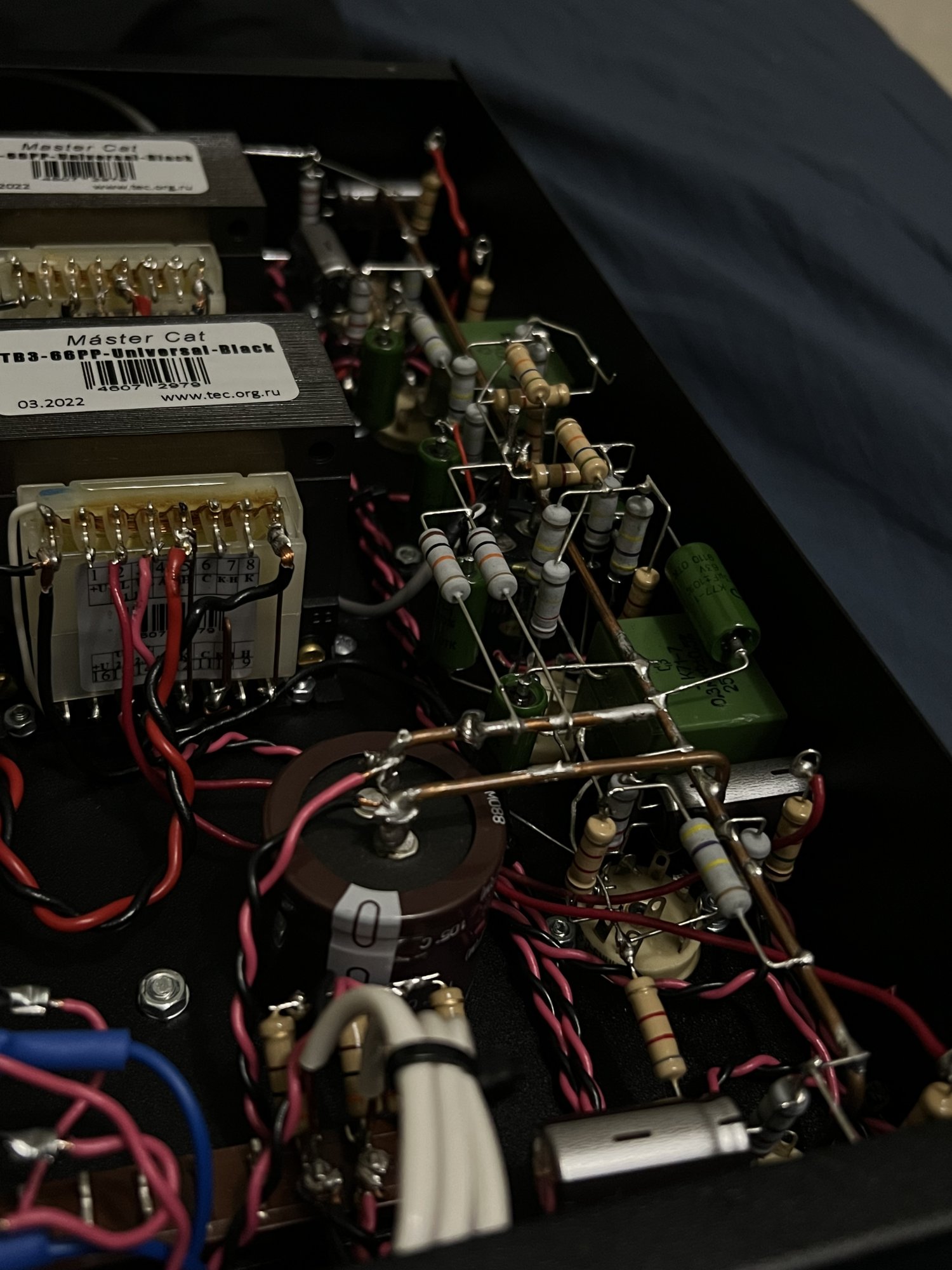 Добавлю эффект упрямого ишака, он касается некоторых лампочек, вокруг которых пляши, меняй обвеску, смещение, ставь в катод блэк гейты. в ответ та же самая ржавая жестянка и наждак. Или серятина , холод, скука . В лучшем случае- слащавость . Или смещенный вверх баланс. И хоть тресни, ничего не изменить в звуке. Бас можно добавить, прижав средину делителем, но характер баса не поменяется.