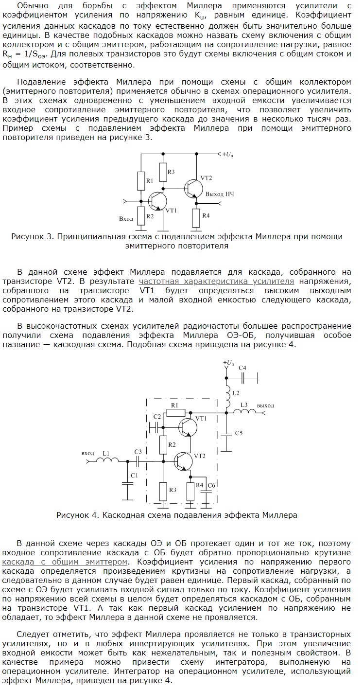 Эффект Миллера заключается в изменении межэлектродных ёмкостей . Изменение ёмкости под действием переменного напряжения приводит к появлению нелинейных искажений в области высоких" частот.