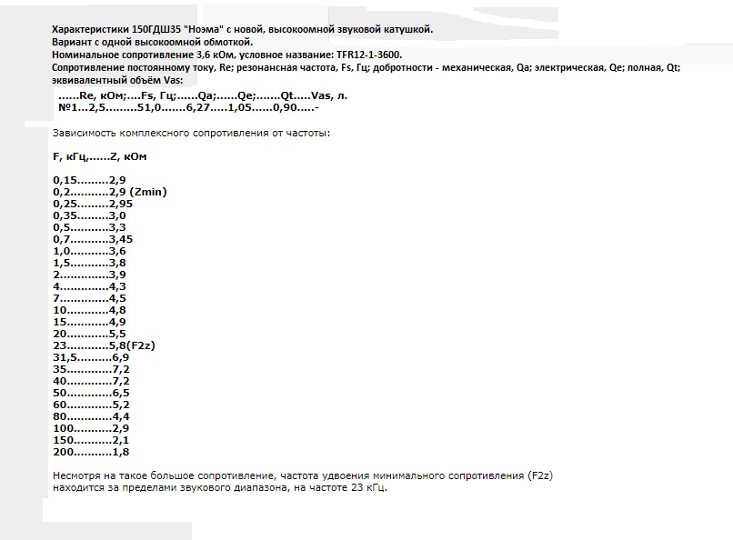 Сам динамик, на базе 150ГДШ-35 "Ноэма", и его параметры, до и после доработки - во вложении.