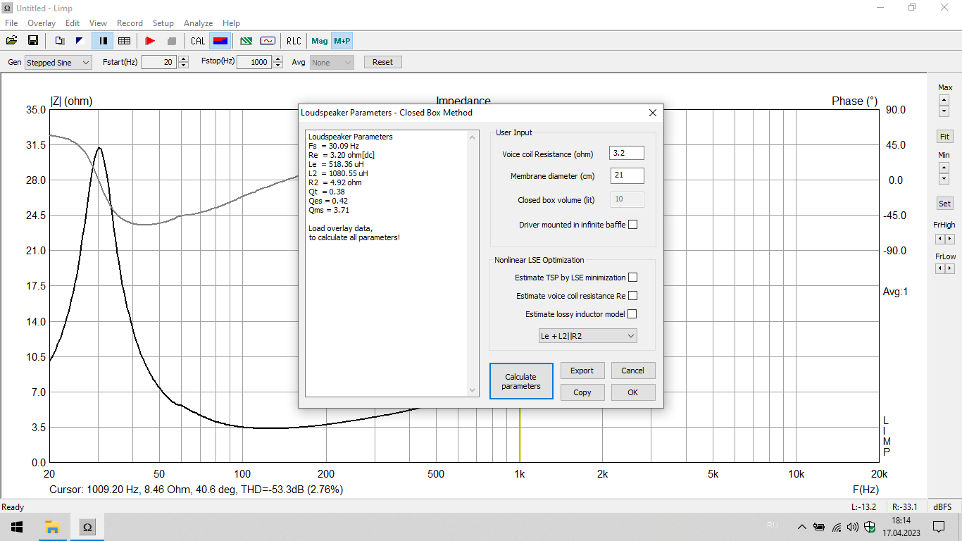 LIMP software - измерение импеданса/фазы