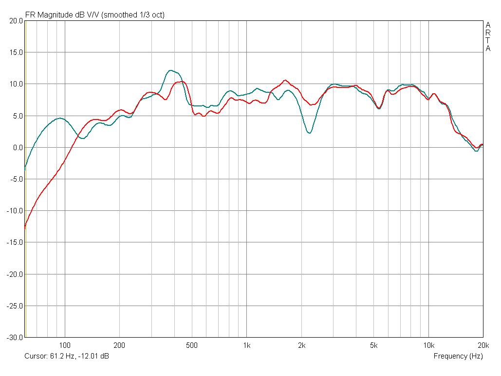 Удивительно, но несмотря на практически идентичные АЧХ, звук очень разный. Тональный баланс с 2ГД-38 явно лучше, нет небольшой крикливости, как у 2ГД-40, но нет и такой яркости, маловато воздуха, надо добавлять пищалку от 10 кГц.