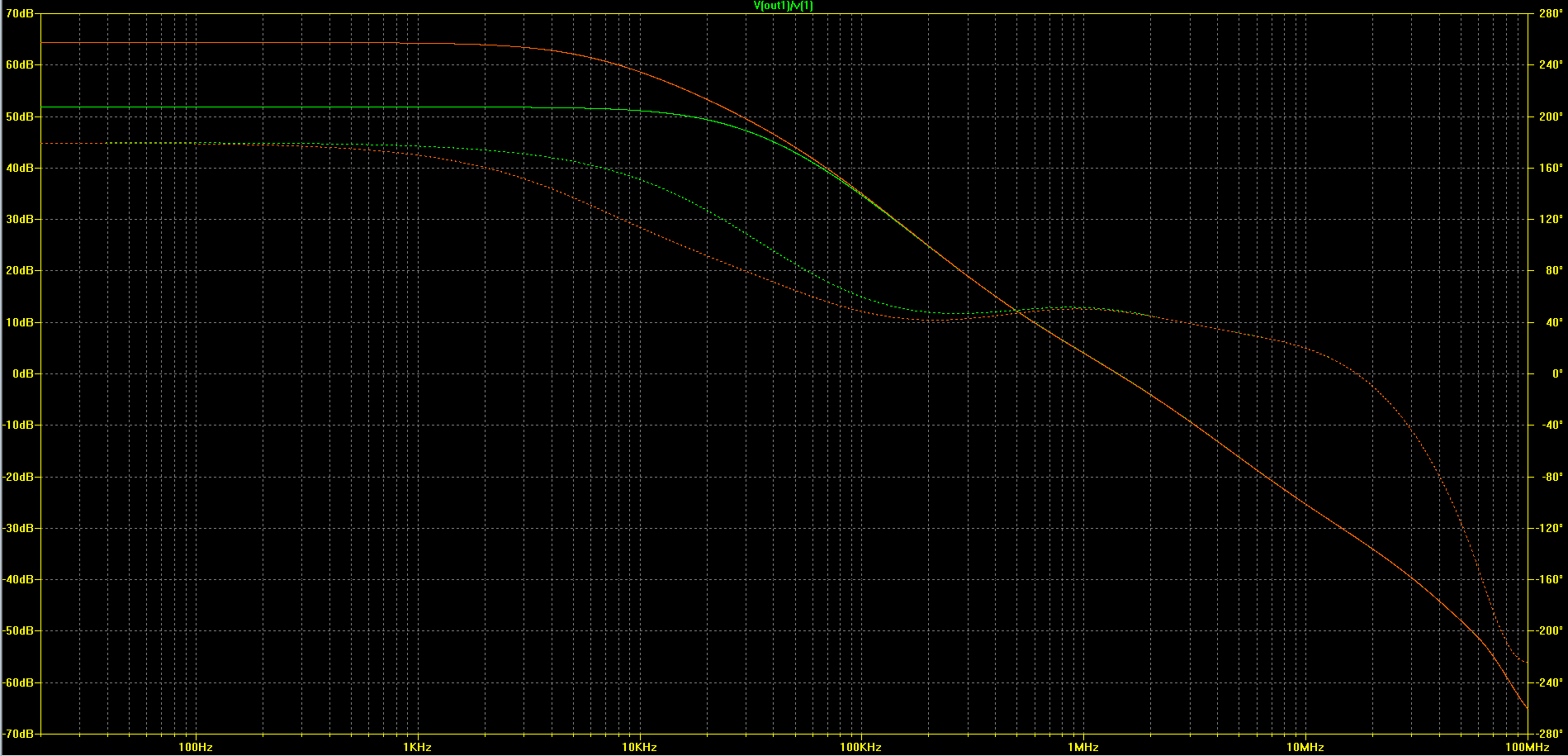 50дБ глубина ООС. куда же всё усиление подевалось, подумал я и решил для начала нагрузочные резисторы УН отцепить от земли..