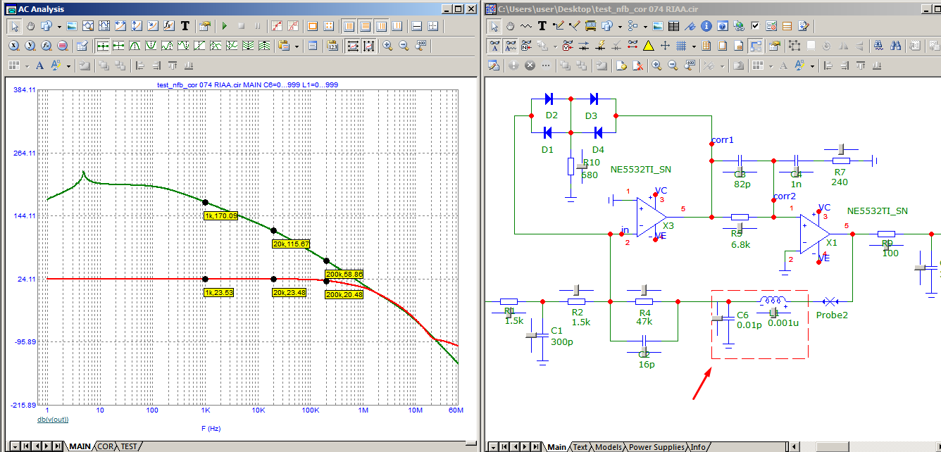 ухты. 50дБ глубина ООС. куда же всё усиление подевалось, подумал я и решил для начала нагрузочные резисторы УН отцепить от земли..