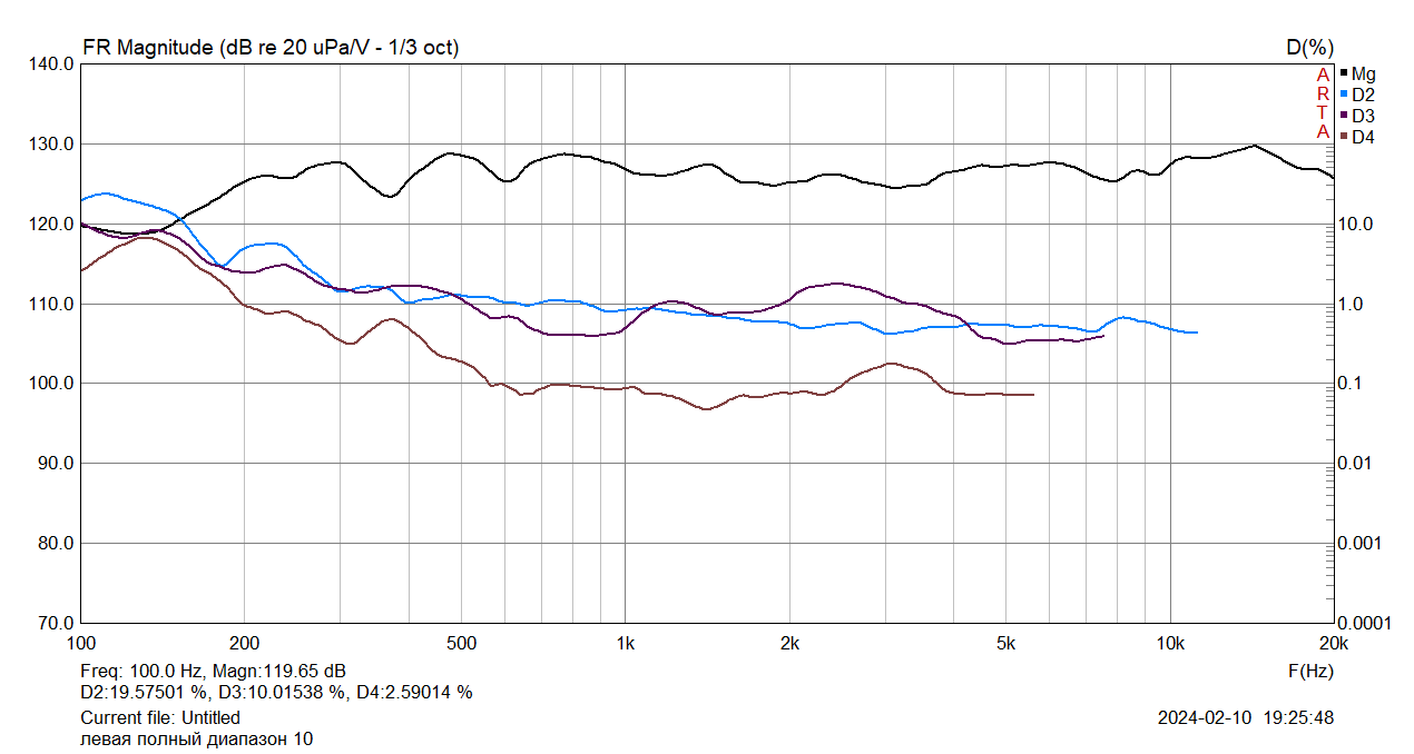 Ниже АЧХ динамика и результаты по THD при разной величине индуктивности.