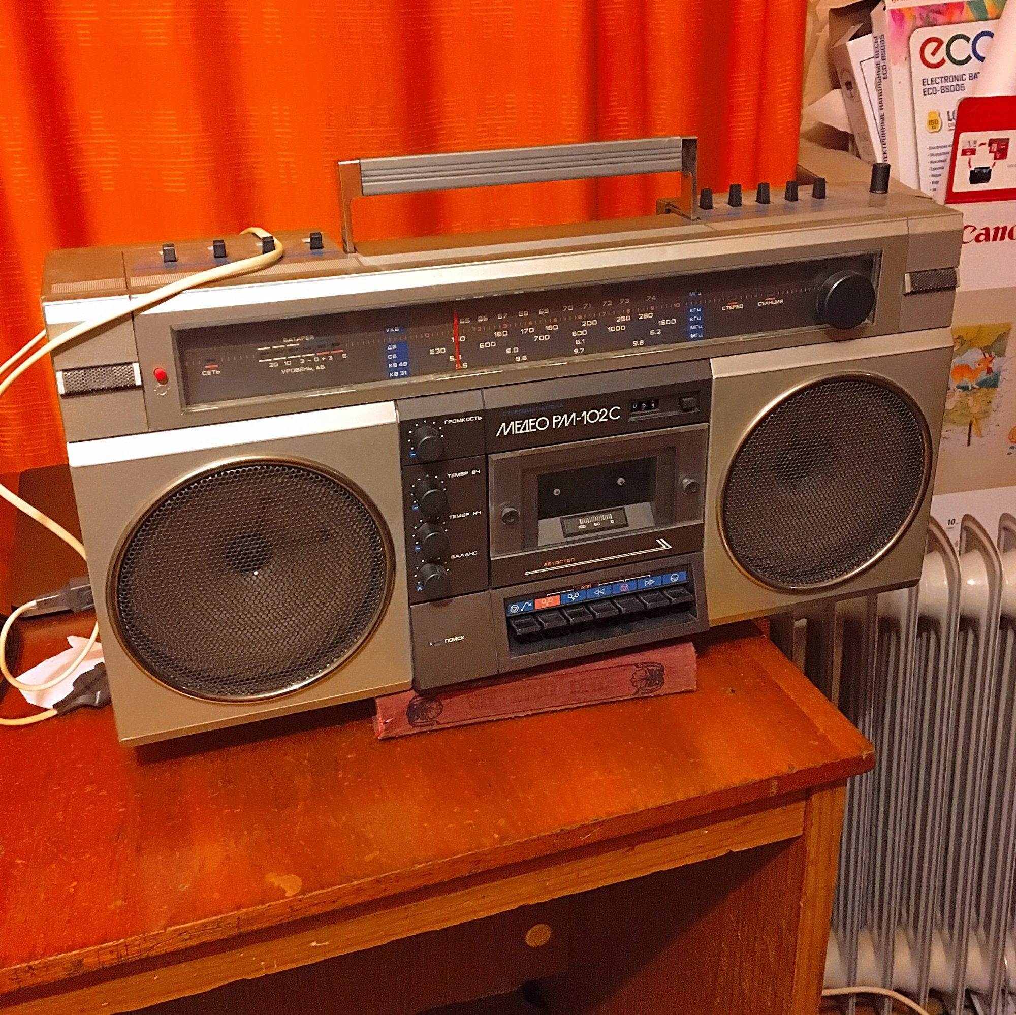 Хороший аппарат по части механики, краска только с корпуса осыпается. ЛПМ копия Шарпов конца 70х годов с их родовыми болячками (подмотка от резинки на тонвале). По детонации исправная примерно 0,15%DIN как у стационарных аппаратов. У Медео-рм205с такая же механика, но отбраковка с детонацией 0,3% и алюминиевым маховиком (у 102 латунный хорошо отбалансированный). С головкой Д810 ачх воспроизведения линейна до 18кгц. У магнитолы не хватает тонкомпенсации в регуляторе громкости. Радиоканал из типовых модулей середины 80х как у других первоклашек. Хорошая магнитола с качественным звуком