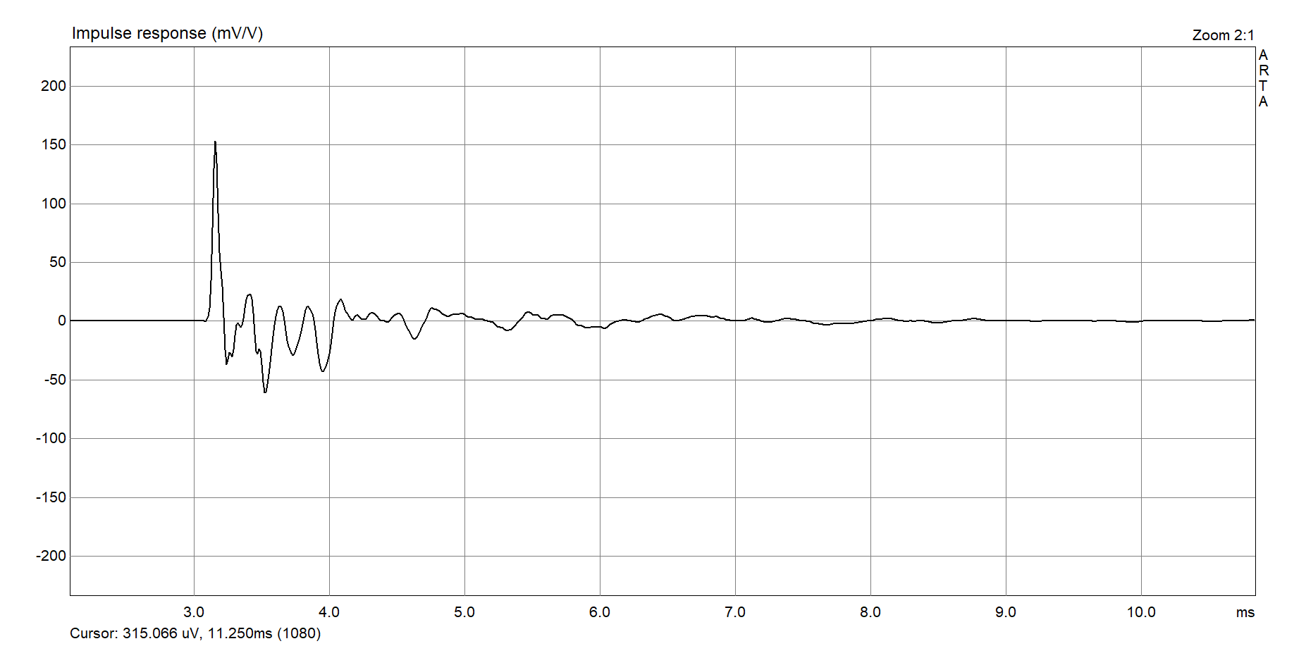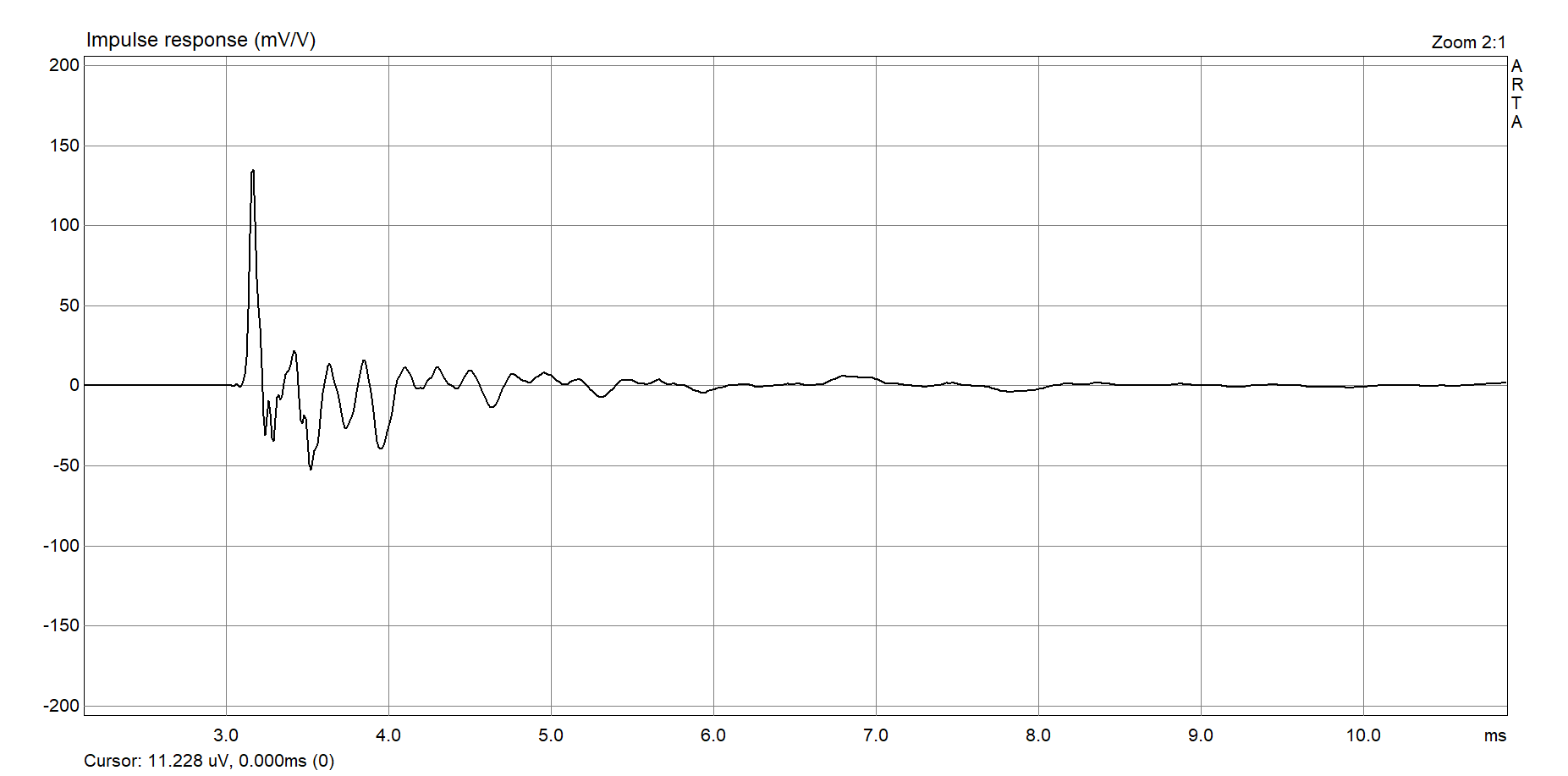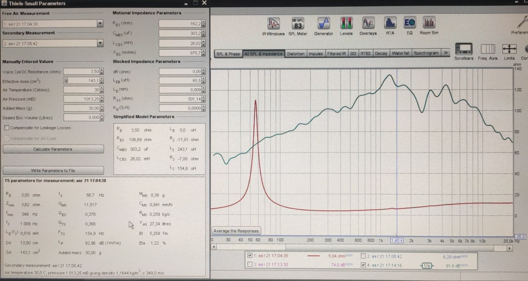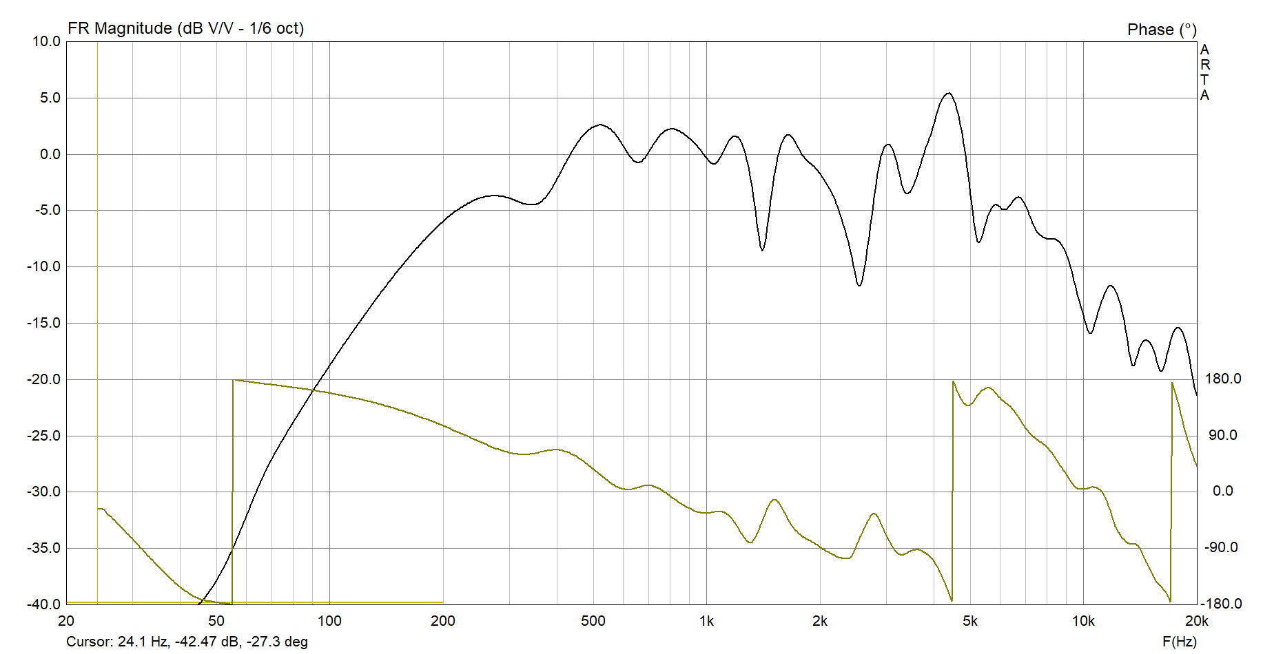 Ему нужен домик из подушек на диване, и мягкое одеяло на полу по пути к микрофону, расстояние 2...3 диаметра диффузора. Средние частоты с окном 3 мс будут точно как в безэховой камере, выше 600 Гц.