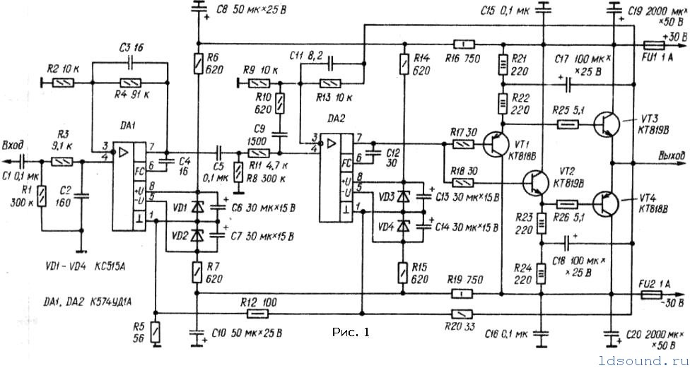 А перед ним, чистый преамп напряжения с Ку=10