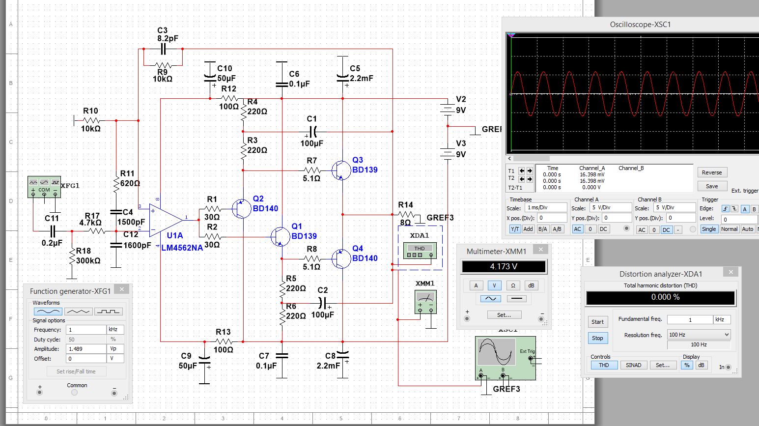 По симулятору все красиво. На практике-не соответствует. Искажений ноль- не правда, слышна грязь без приборов. Ку=3, на деле еле-еле 2.