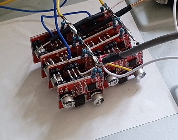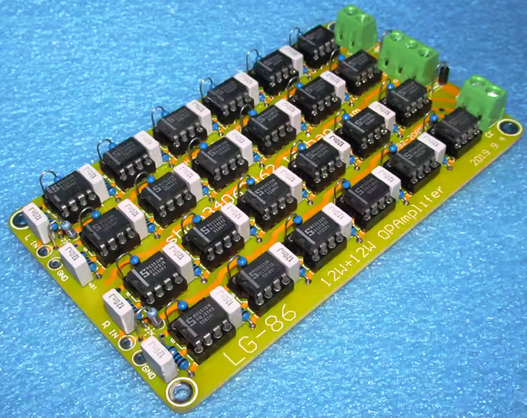 MAX4410, 2х8 штук в параллель. Питание 5в, на каждой платке стабилизатор на 3.3в.
