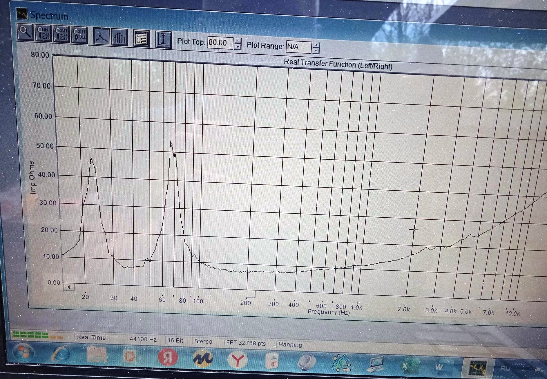 Смотрим АЧХ басовика в ЗЯ , законопатив дыхало инвертора пупыркой. Там же частота резонанса в ящике. Микрофон в морду лица динамика, напрямую без фильтра. Просьба полку совместить с линией шкалы.