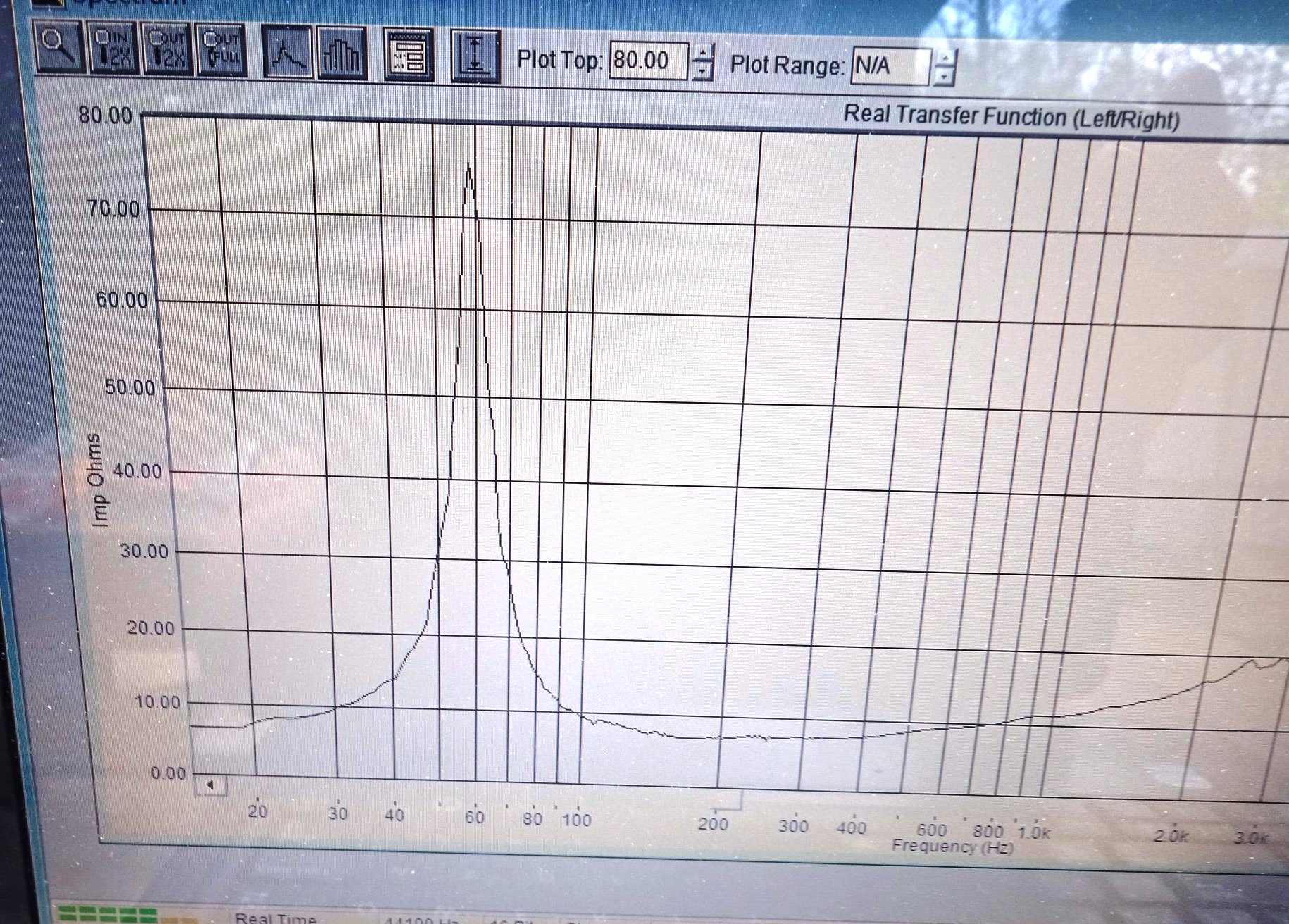 На 59 Гц Qtc 0, 63 примерно. В десятку. Порт настроен тоже верно. Единственное " не то в звуке" может быть от малой ширины морды лица фронтпанели по сравнению с размером корзины. Искажения огибания обвалят полезный низ, выпрут мидбасовую часть.