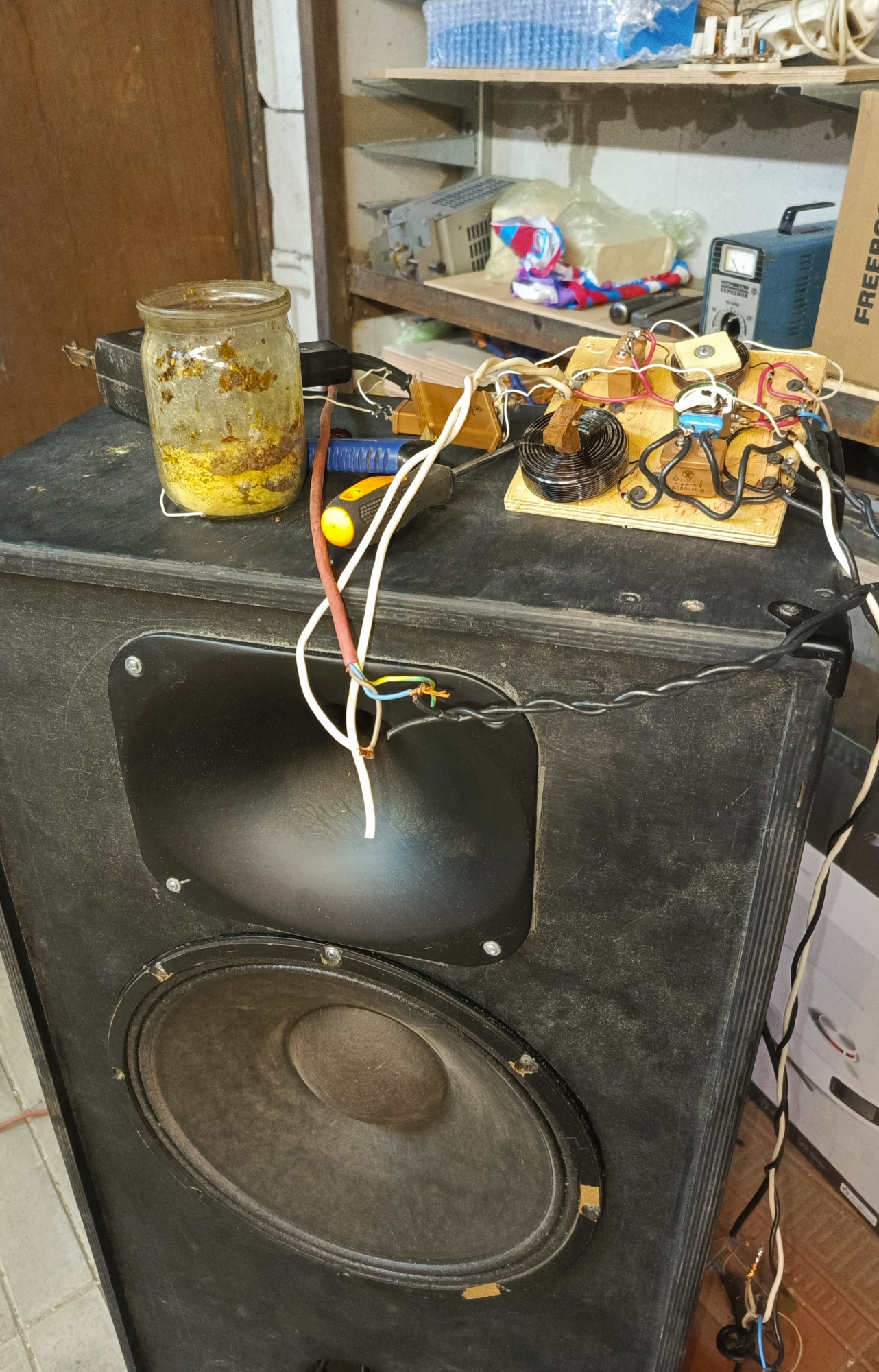 пока остановился практически на том же, что и год назад, изменения: 0,5 мкф на ВЧ добавил (потенциометром убавил...ВЧ от рупора на самом деле лишковато, хоть микрофон рисует обратное).