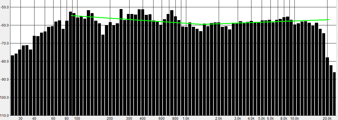 При отсутствии мягкой мебели реверберация с 1,6 метра накинет примерно +4дБ НЧ/мидбаса относительно 10к. Без реверберации получаем такое: