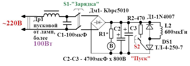 А дело не в том, что хватит или нет, суть в запасённой энергии. Те же 600В при ёмкости батареии в два раза меньше дали бы практически равное значение Дж. При меньшем токе, тут и требования к тиристору только к классу напряжений. Всё таки работать около критических значений перегрузочной спосности такая себе затея.Так то ты прав, что можно сделать к примеру 600в и меньше ёмкость, но так как мне сказали, что для кобальтовых от 2а12, 25гдн-4, 4а32, 4а18 и даже МС на феррите от 4а32, 300 вольт хватит, то заморачиваться с удвоением или трансформатором не стал.
