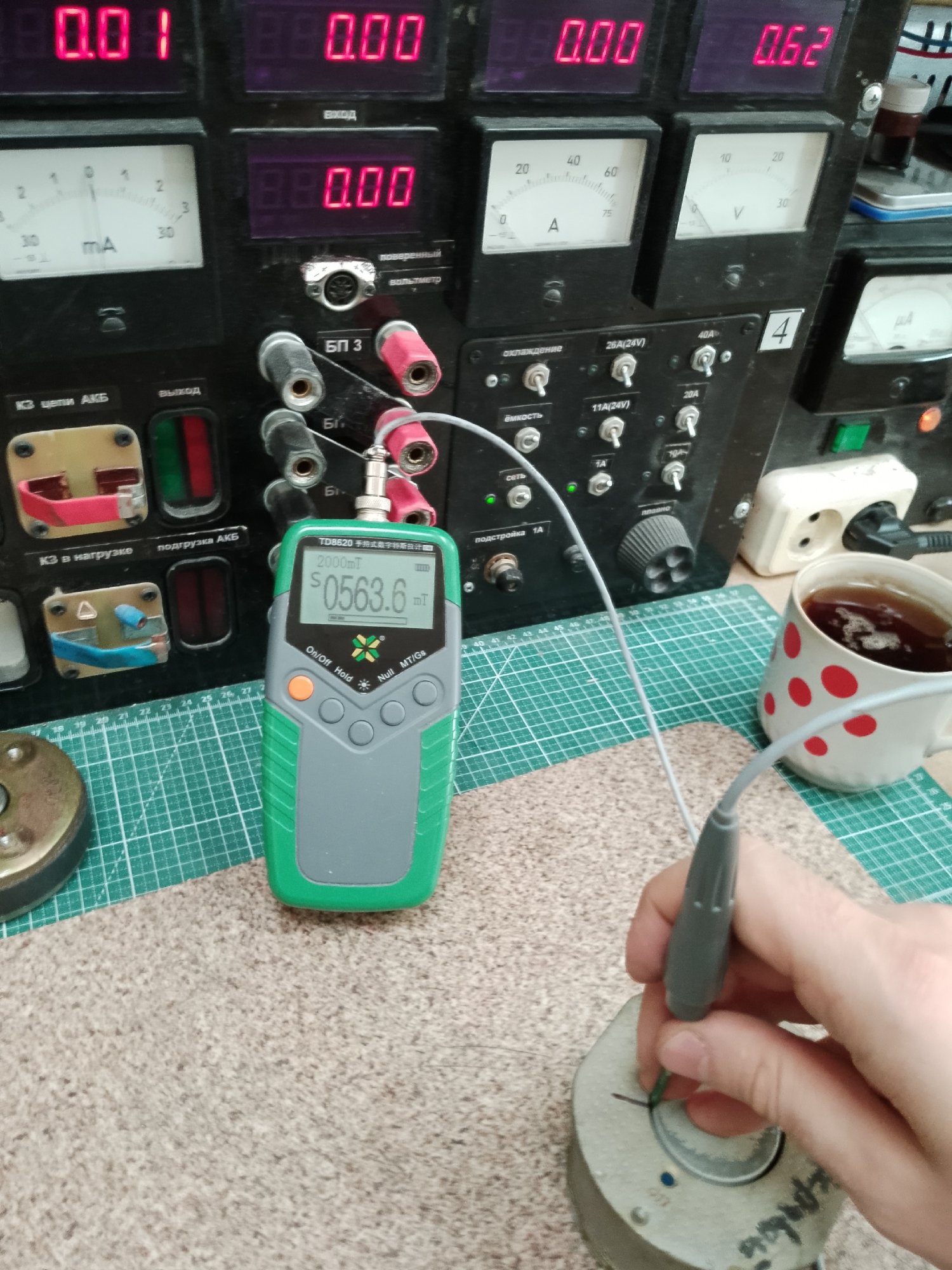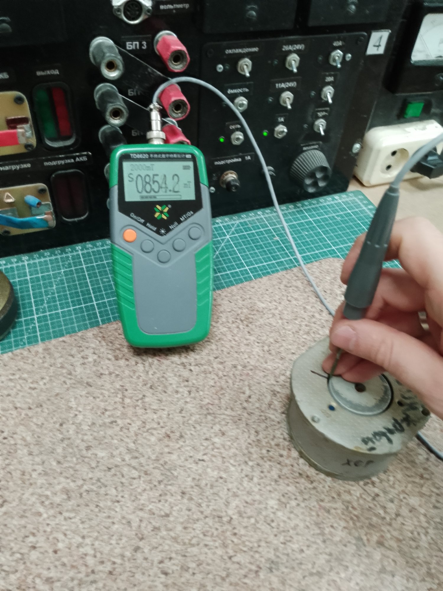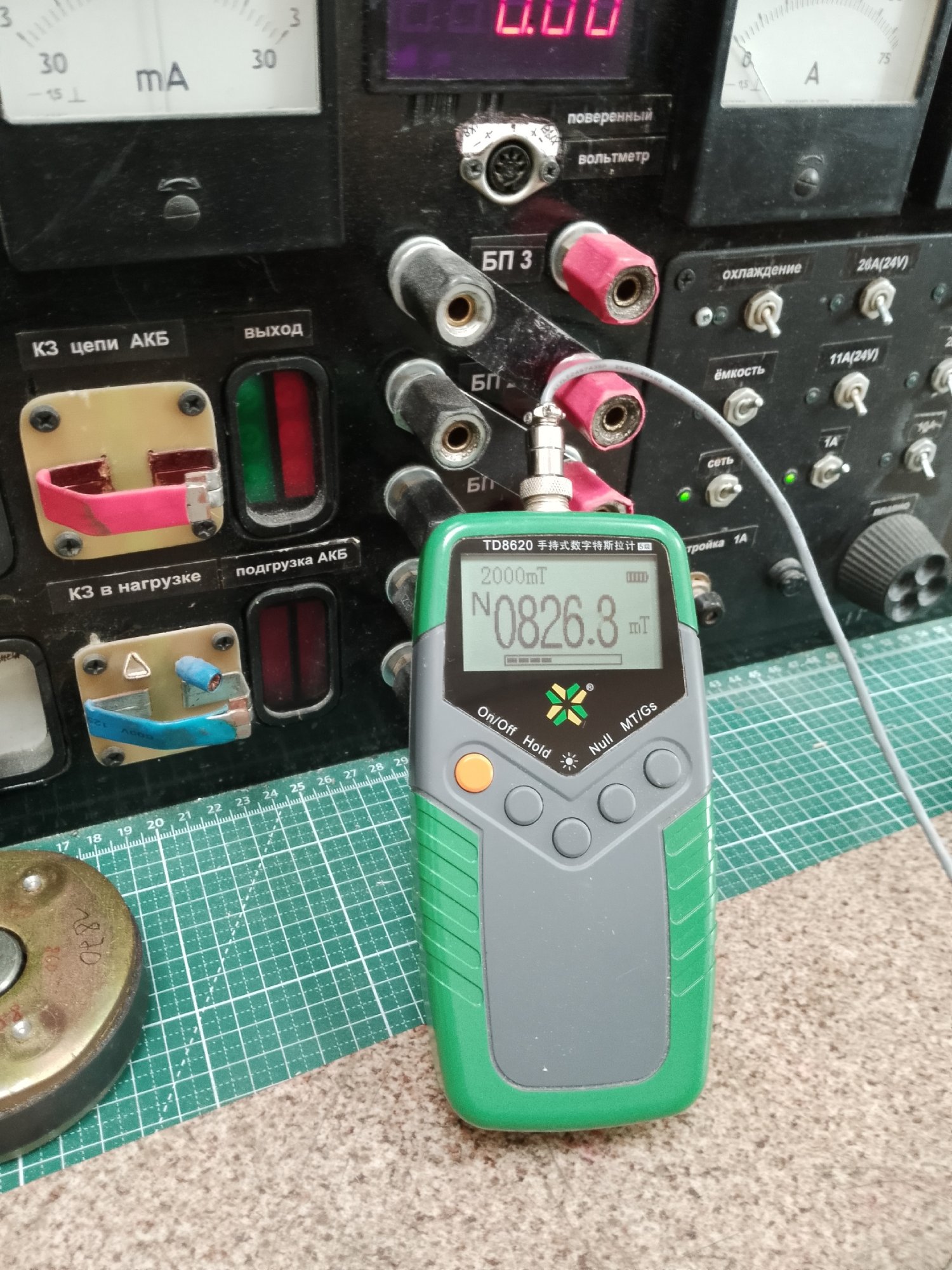 Меняю полярность, снова бахаю - становится 840мТл. Я даже в какой-о момент подумал, что просто щупом не попадаю в ту же точку и изменений нет совсем.