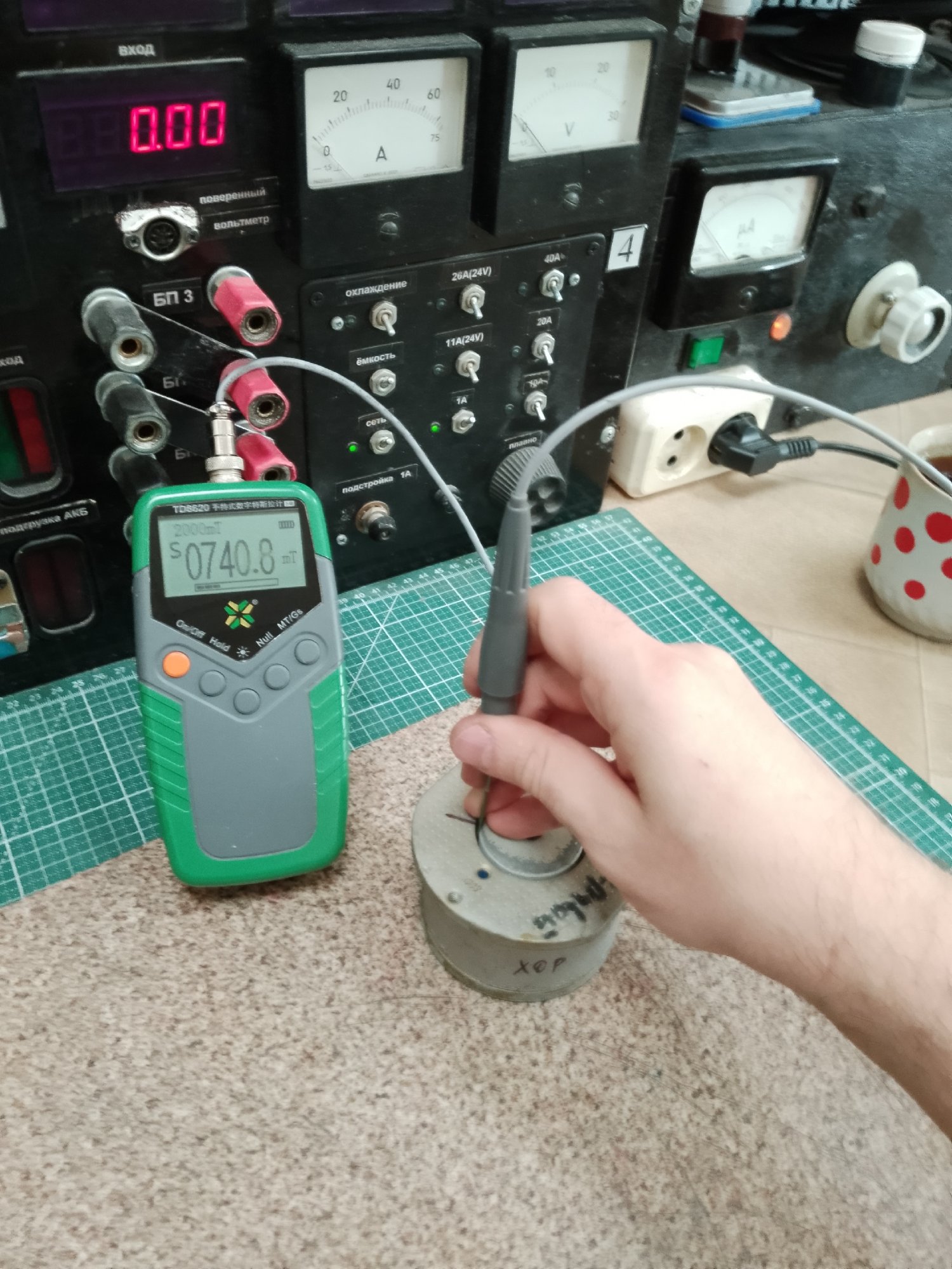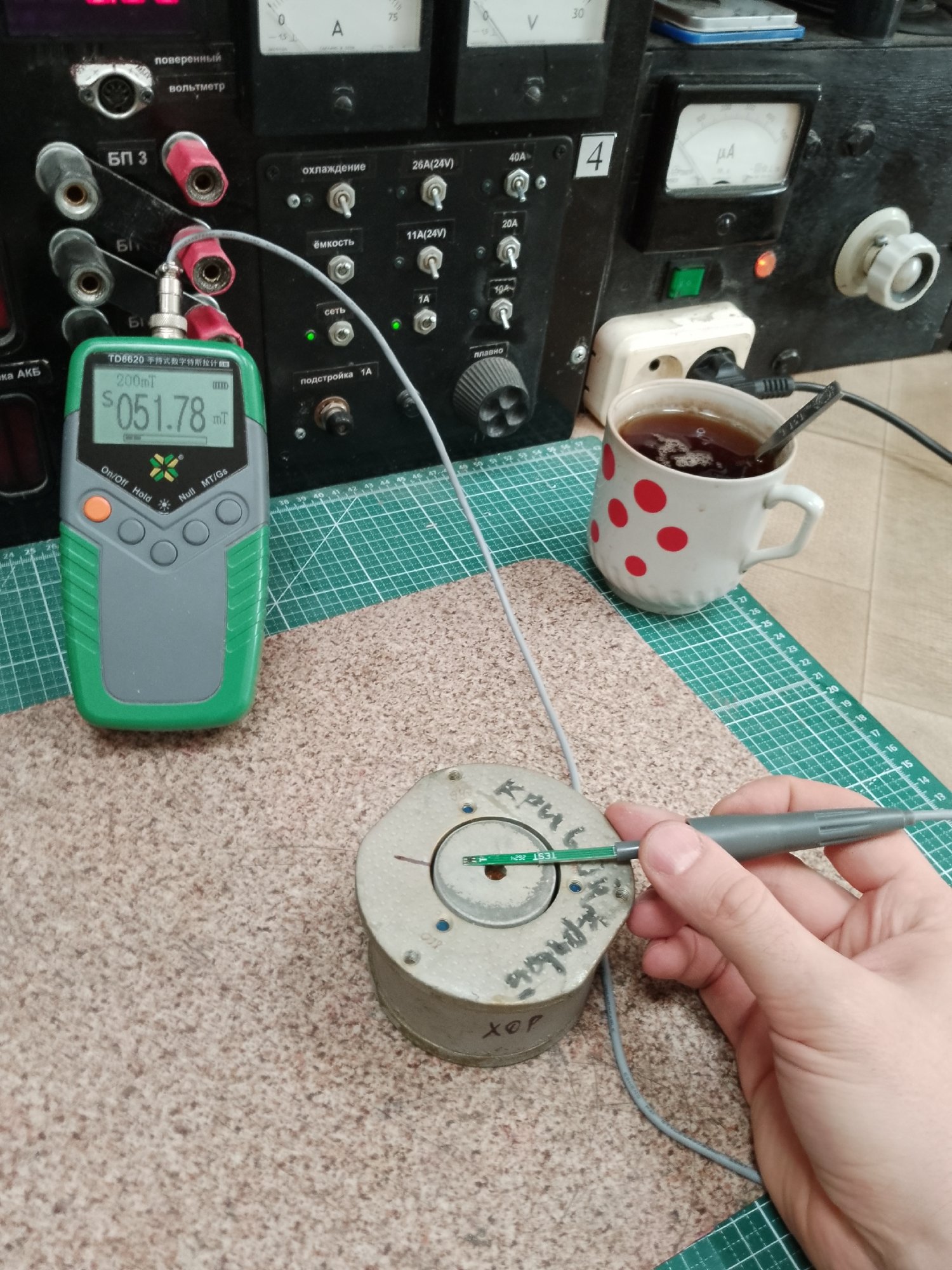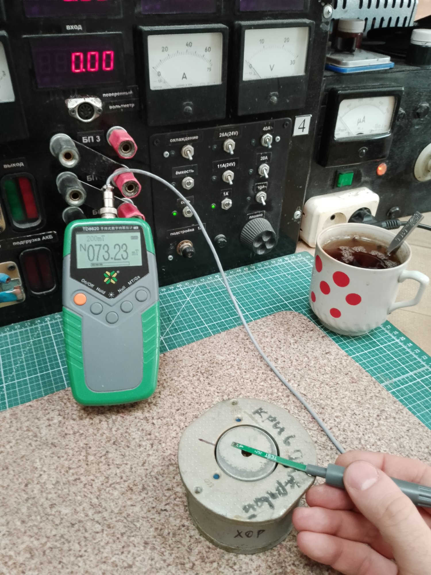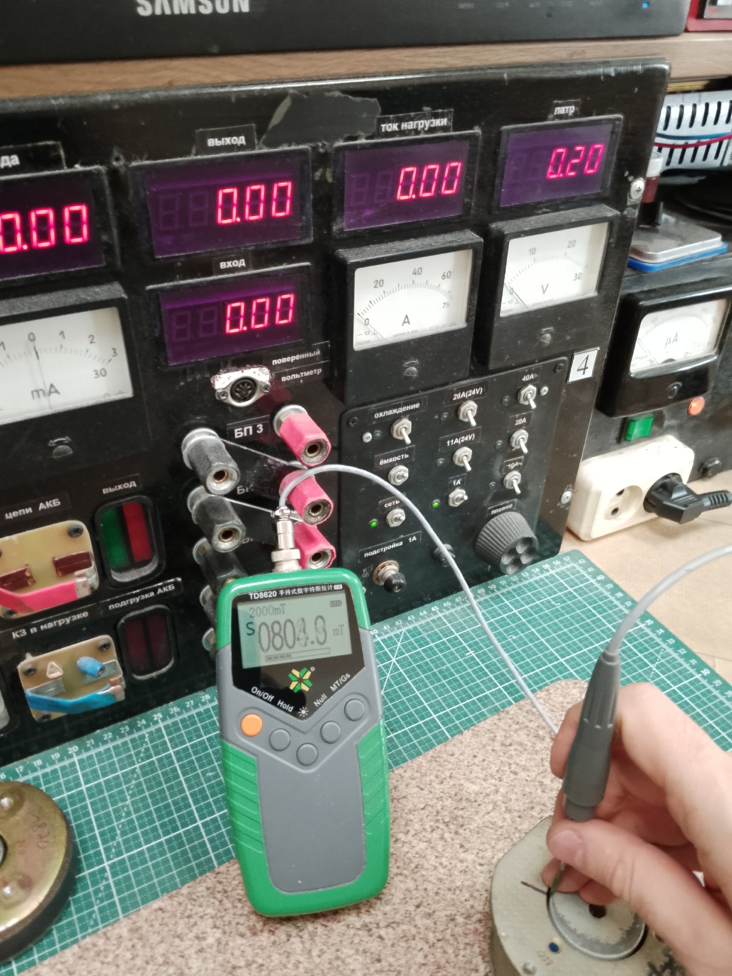 Меняю полярность, снова бахаю - становится 840мТл. Я даже в какой-о момент подумал, что просто щупом не попадаю в ту же точку и изменений нет совсем.
