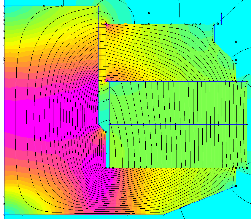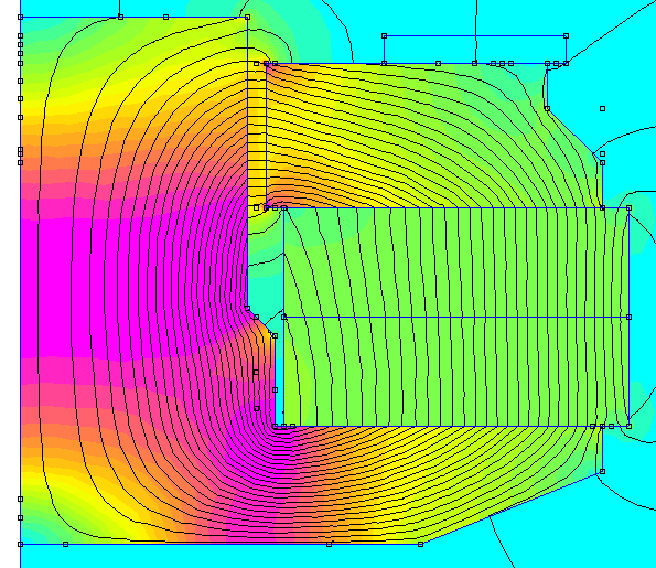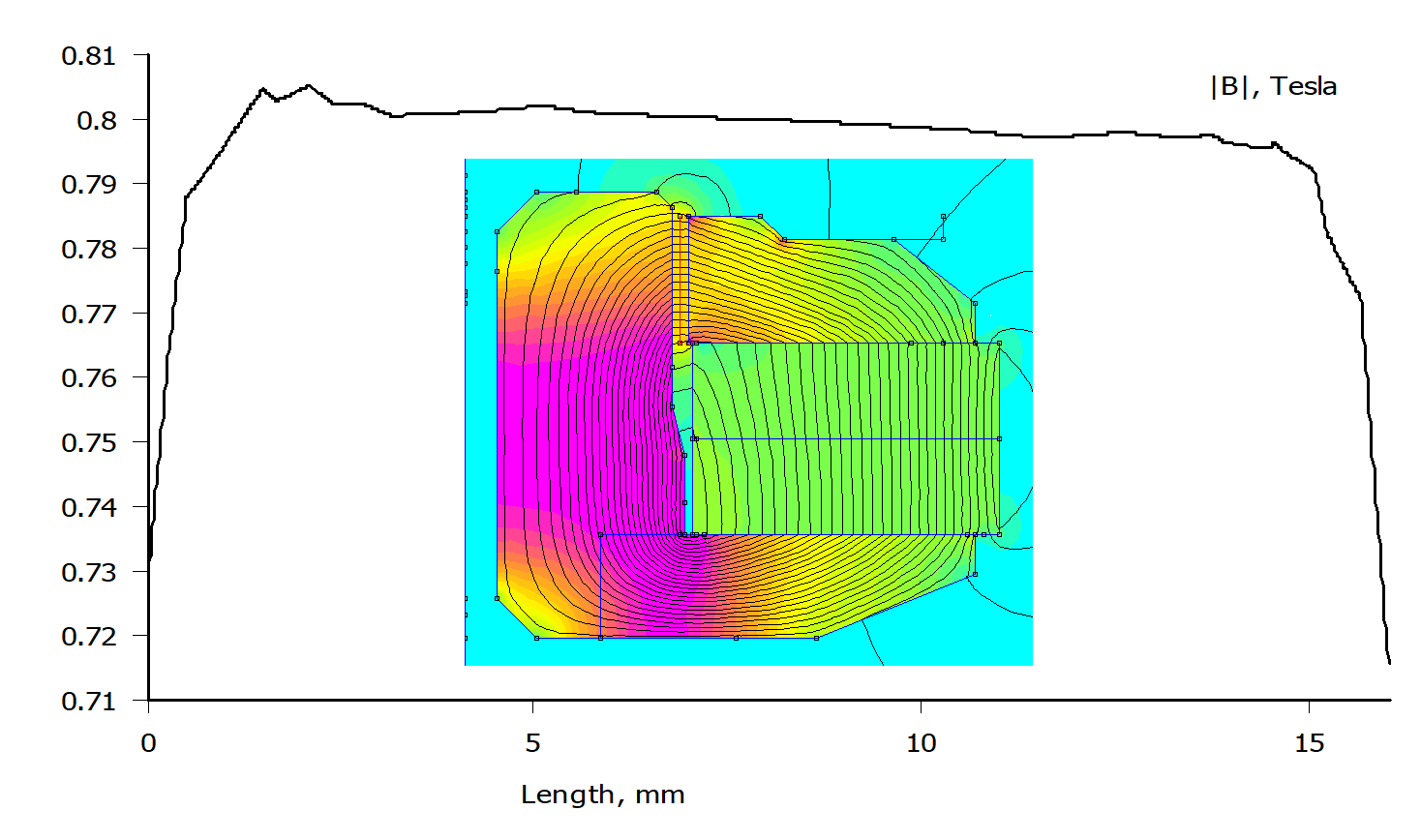 Разве не видно, что керн имеет разную степень насыщения по высоте зазора????В зазоре индукция? Еще в процессе доработки.