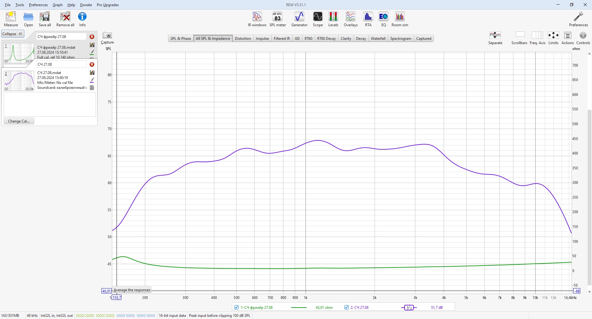 Не уверен, он не поверенный и сравнить не с чем, когда брал понадеялся, что будет более-менее линейным, лучше чем ничего, но не идеальный вариант естественно. Уже позже, когда стал смотреть калибровочные файлы в интернете понял, что это бесперспективное занятие, т.к. определённых пределах ачх у микрофона может быть любой, разброс у них статистически равномерный (behringer ecm8000)