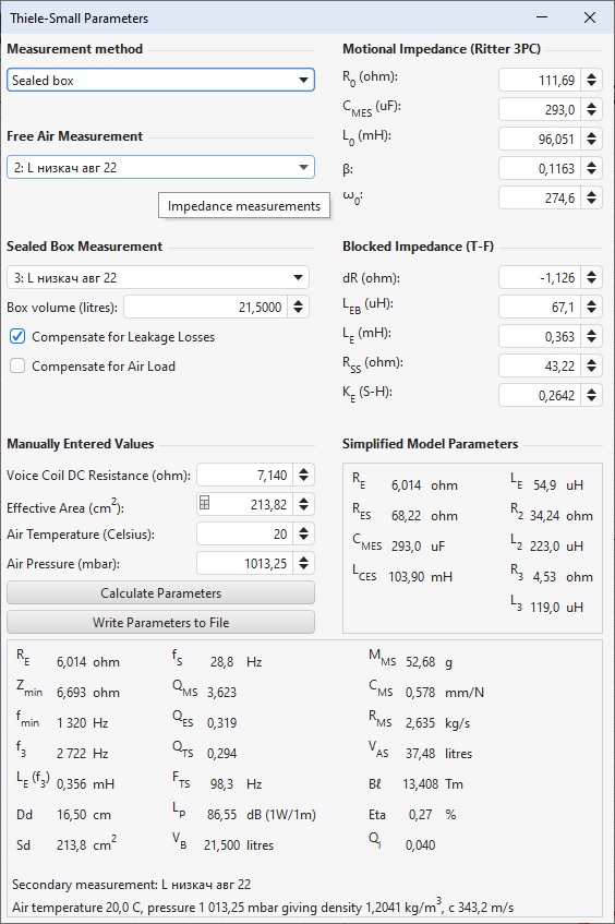 Изобар без ПИ в корпусе 21л у автора, уже даёт добротность системы Qtc 0.49, с подключенным ПИ частота резонанса уехала и полная добротность системы туда же, но спасает автора только то, что изначально низкая добротность головок 0.29