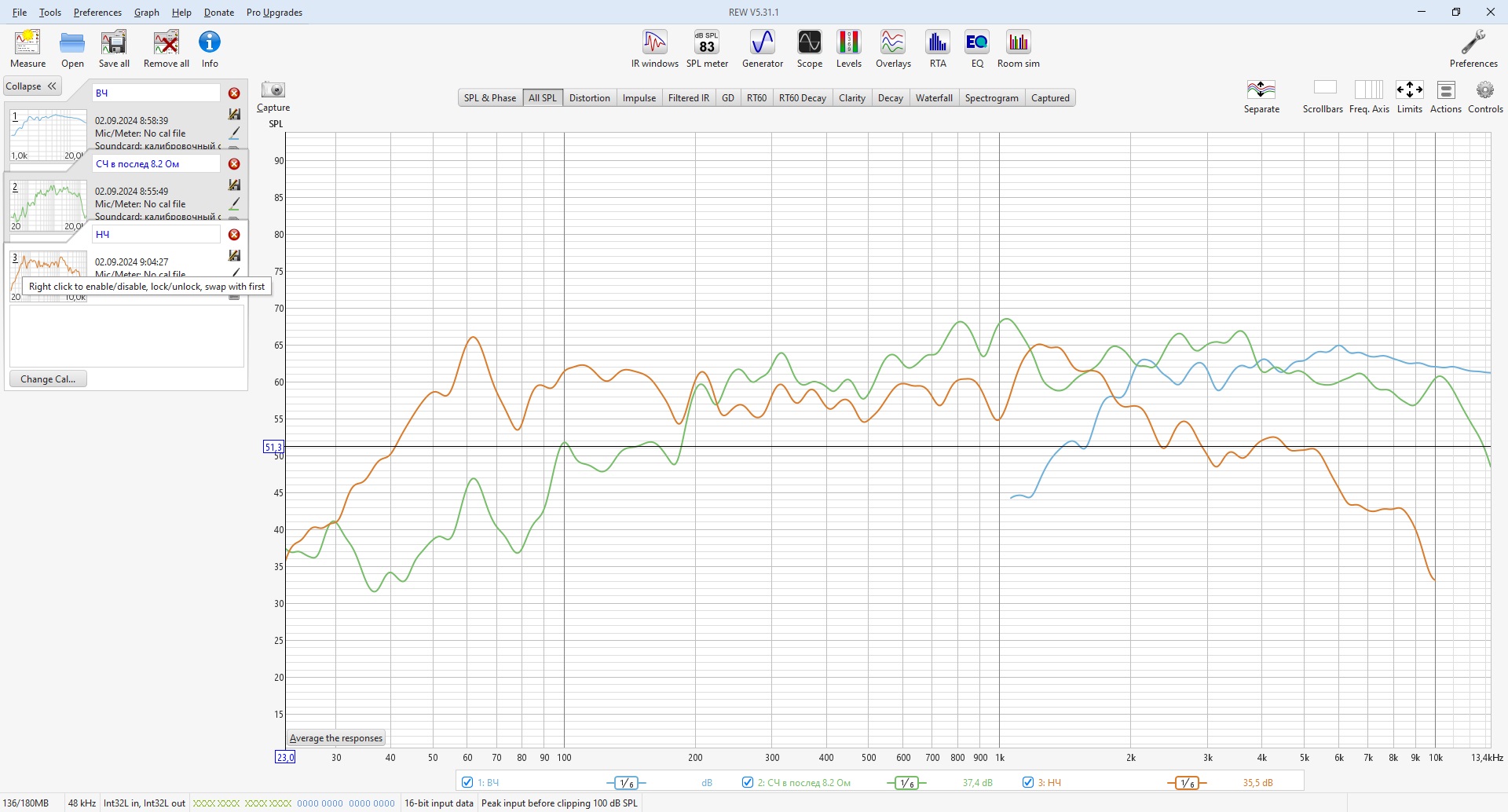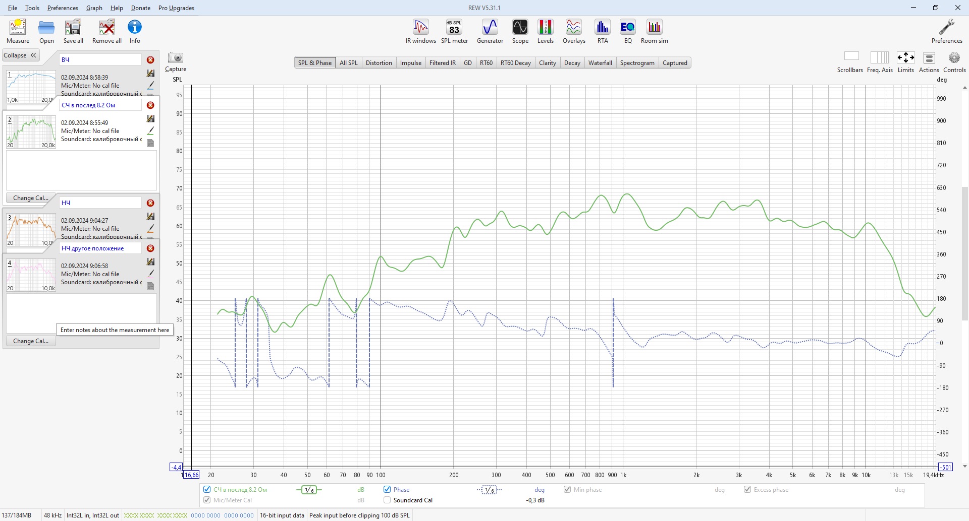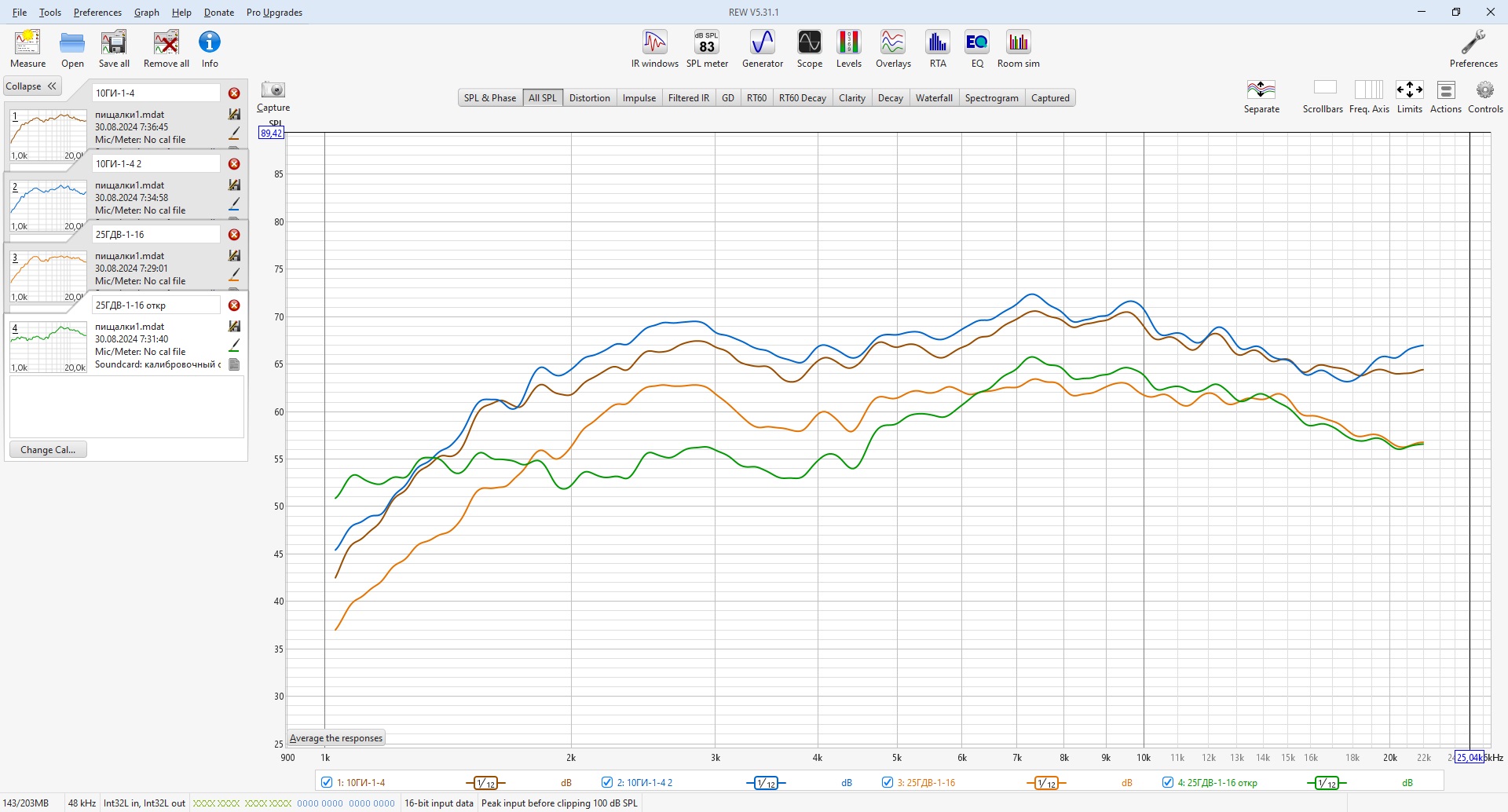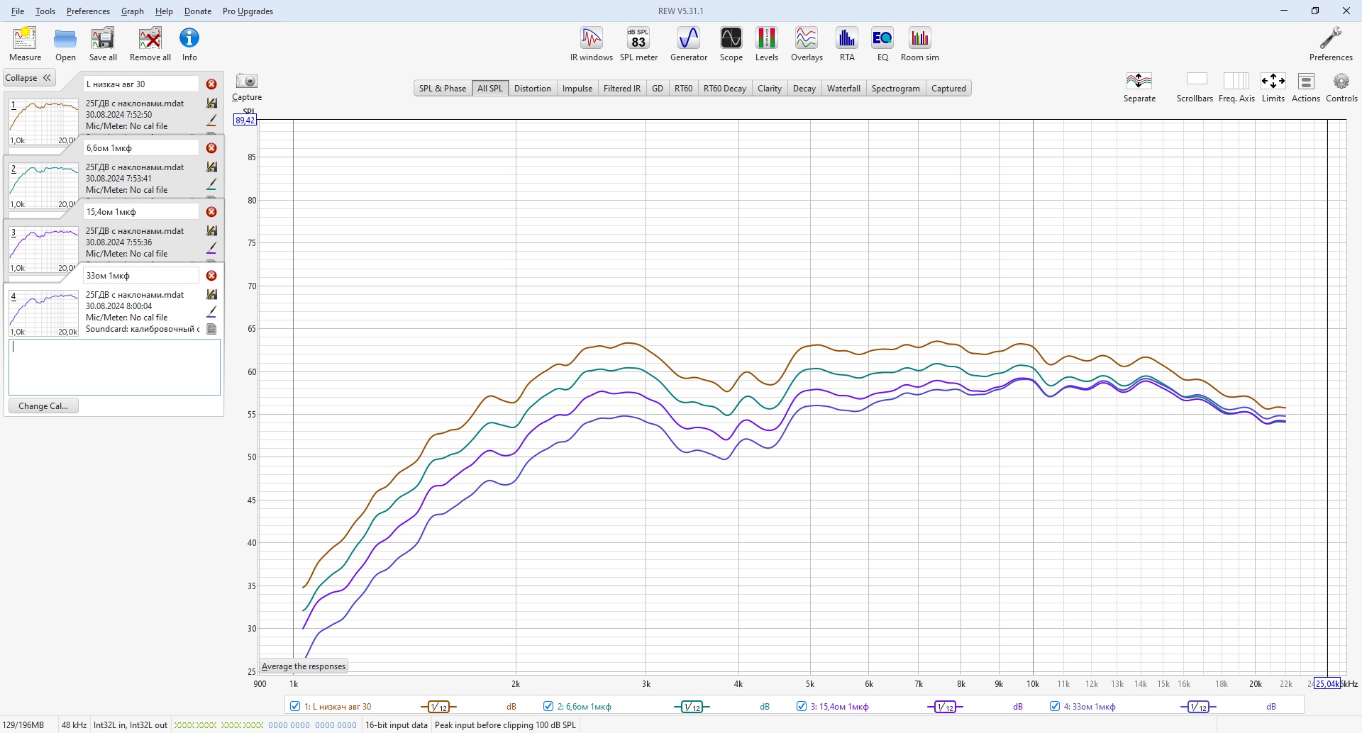 Теперь я промерю три динамика в корпусе выровняв их по громкости, чтобы дальше конкретно делением на полосы заняться.