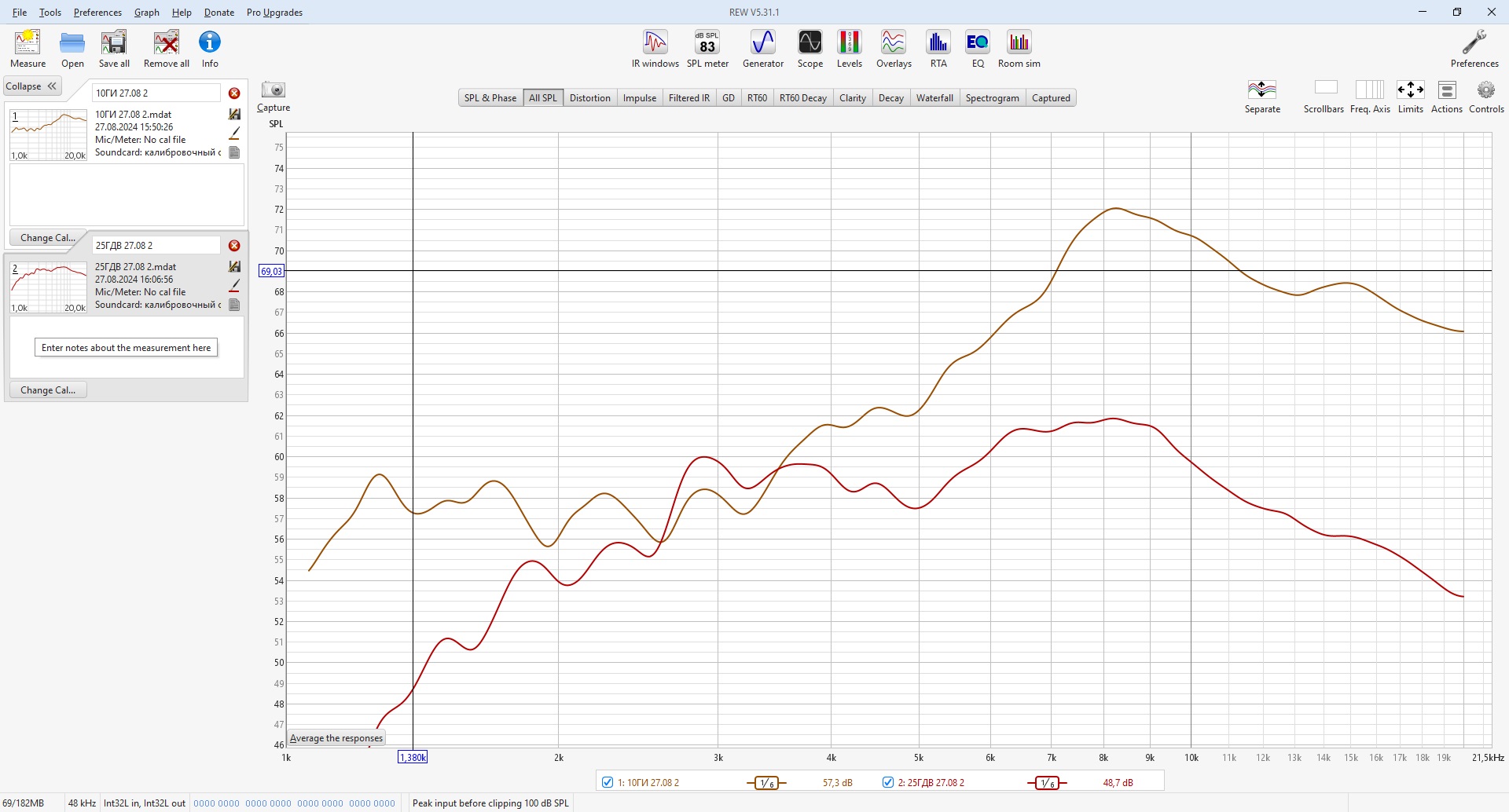2 - Странный подъём ачх на 10ГИ с 1 по 8 кГц частично вина моей "доработки" - а именно изготовление новой задней стенки динамика с прорезями.