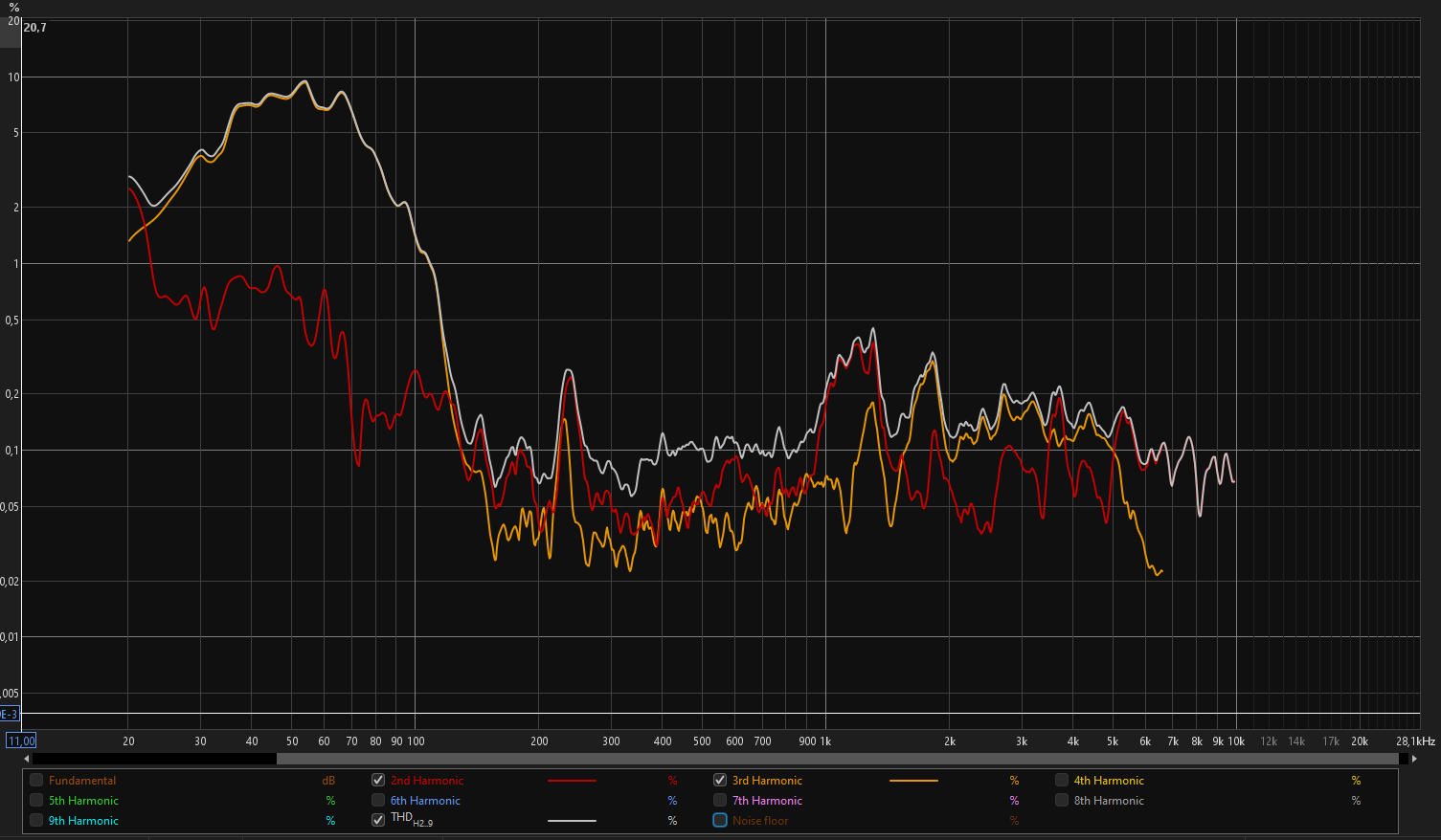 Якщо ділити на окремі діапазони, то так, показники різні, а коли привести все до одного показнику THD(avg) виходить, що рівень спотворень не перевищує 0.3 відсотки в проміжку 300-10000Гц