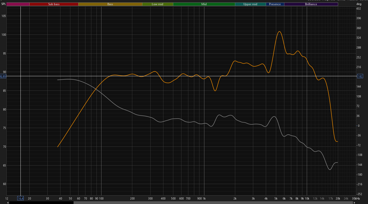 Расчетное значение чувствительности динамика 90дБ, фактическое, нужно более детально откалибровать REW.