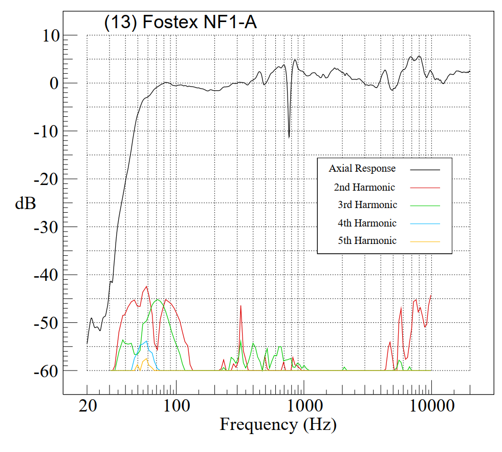 Ну как бы всё теже -64дБ средний увроень второй гармоники, и небольшим подъемом до -54дБ после 2500Гц как на иллюстрации поста №106 хотя о чем же я, NF1 это же двухполосная АС, у которой уровень КНИ в области ВЧ выше чем у ШП в прямом излучении.